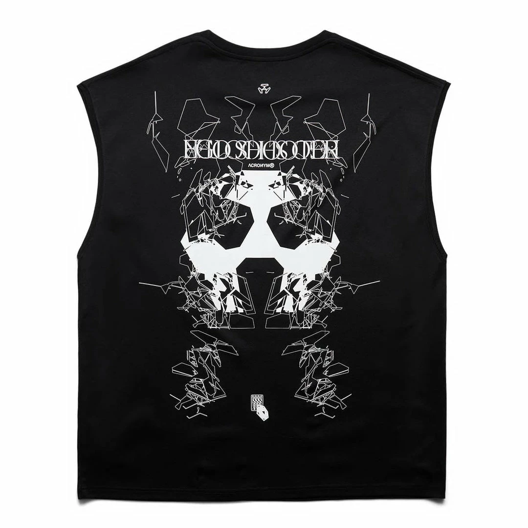 EGO SHOOTER. Oversize fit mercerized cotton interlock sleeveless t-shirt with front and back prints.