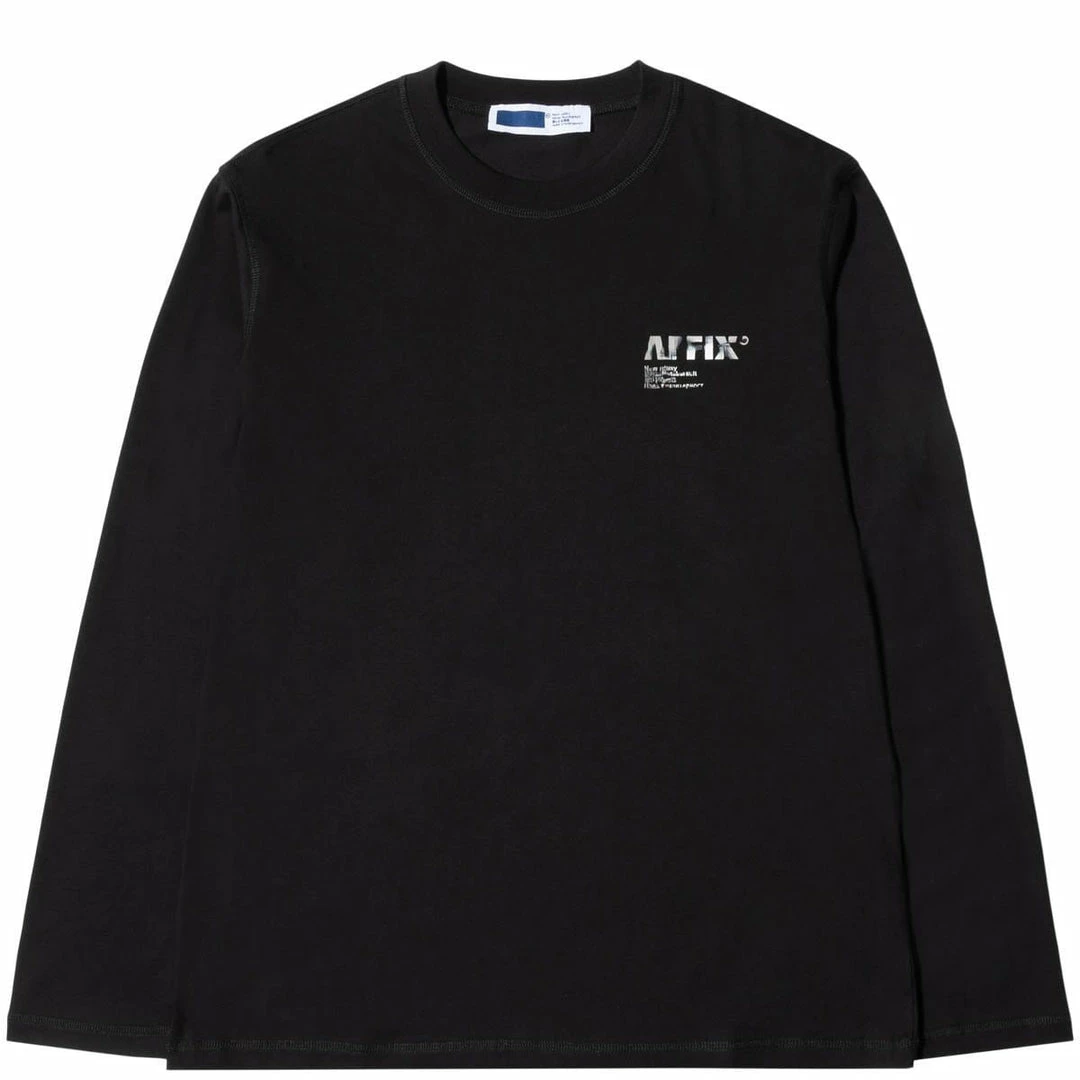 Standard fit crewneck long sleeve t-shirt in mid-weight organic cotton jersey with A.I. Standardised logo print to chest and back