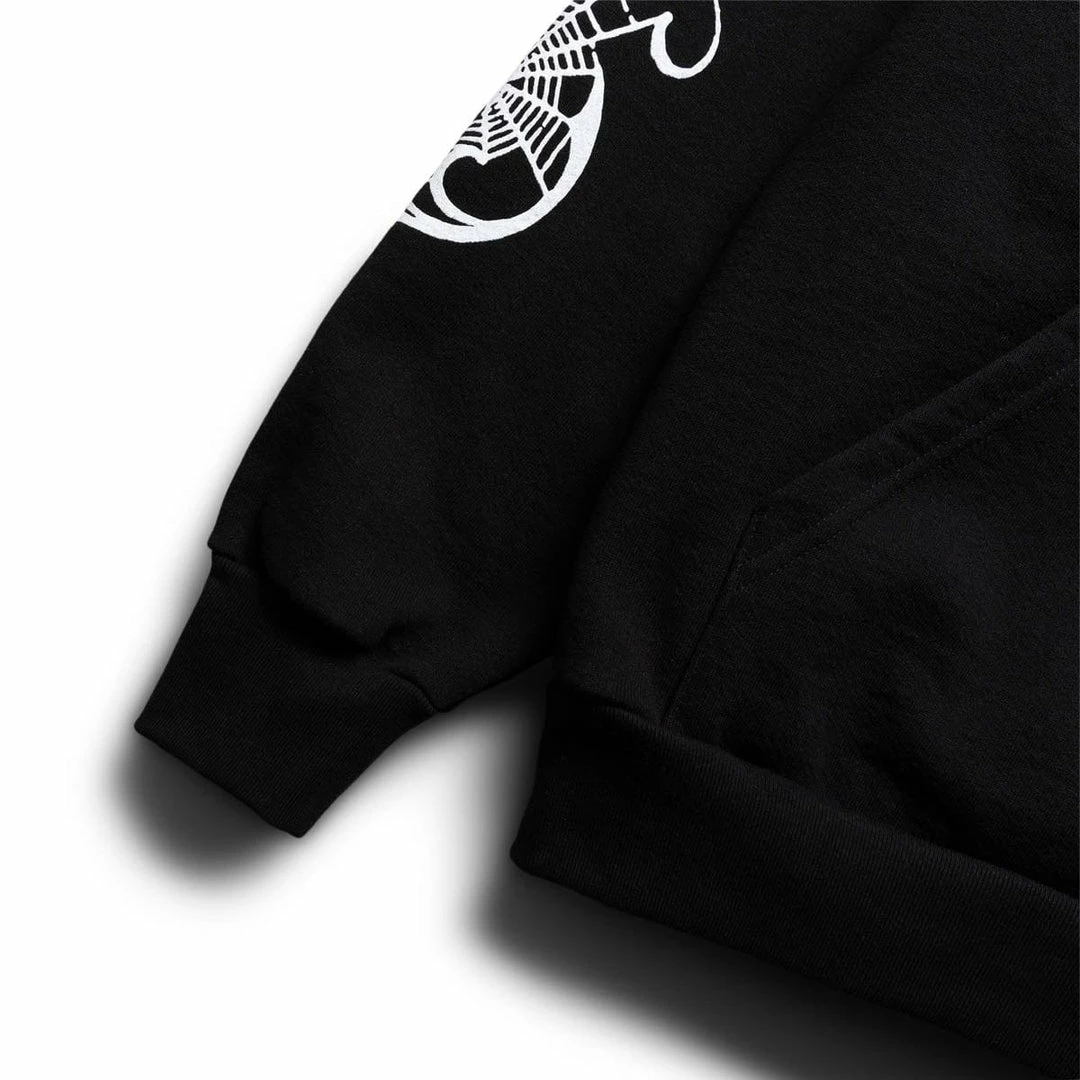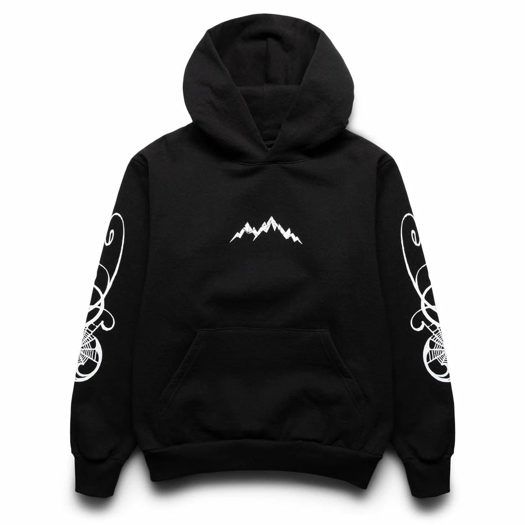 The Spiderweb Hoodie highlights the brand’s iconic mountain logo on the chest and features spider graphics designed by Chor, down each arm.