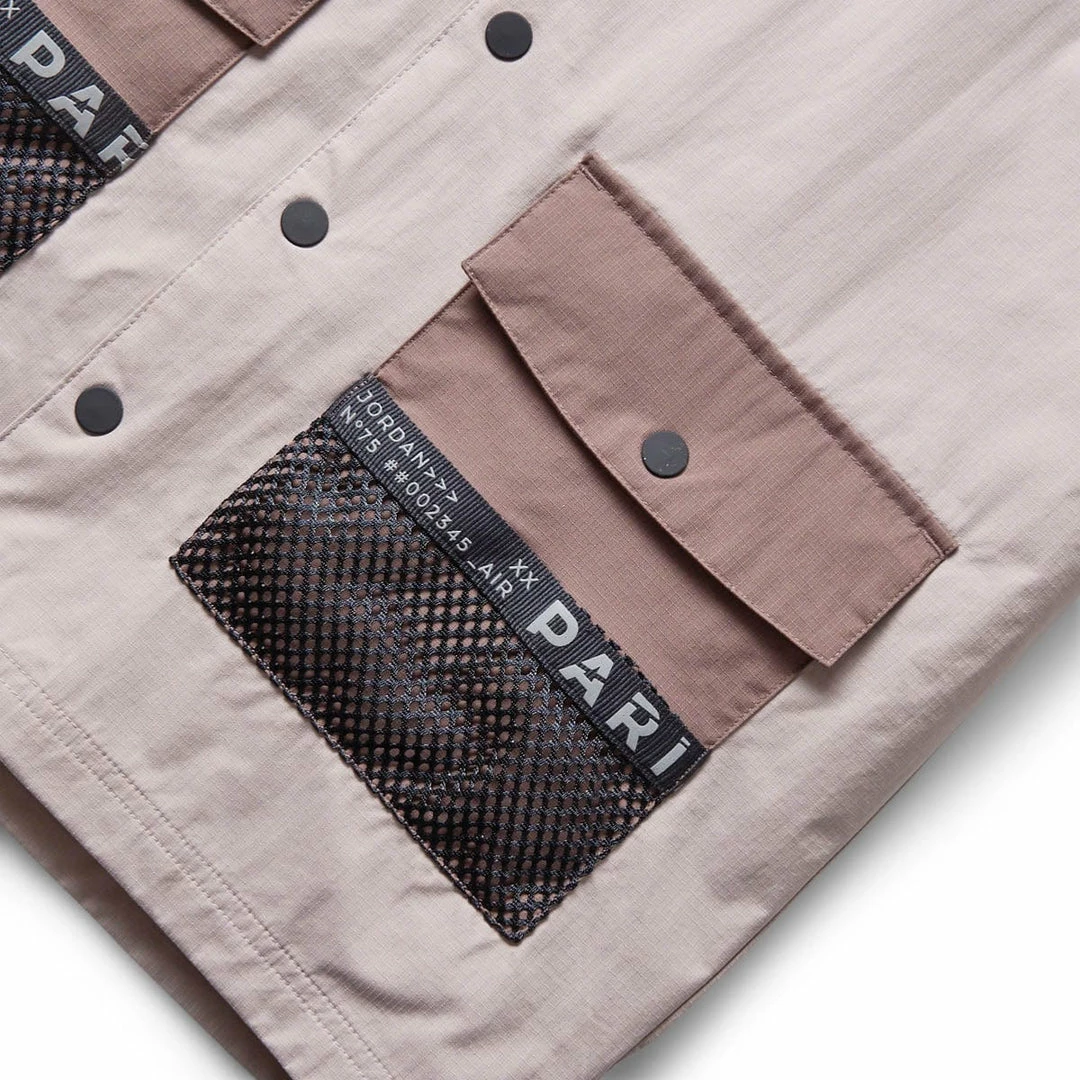 You don’t need to be on the pitch or anywhere near it in order to support PSG these days and the new collection from Air Jordan proves it. With its technical workwear inspired look and feel, the PSG Woven Jacket has multiple focal points to show off like its mesh pockets to its printed graphics.ย Ici, c’est Paris!
