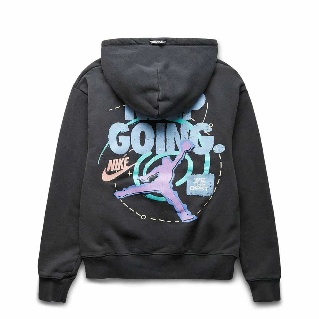 The Air Jordan X DJ Khaled Hoodie features a drawstring hood and “Keep Going” printed graphics on the back.