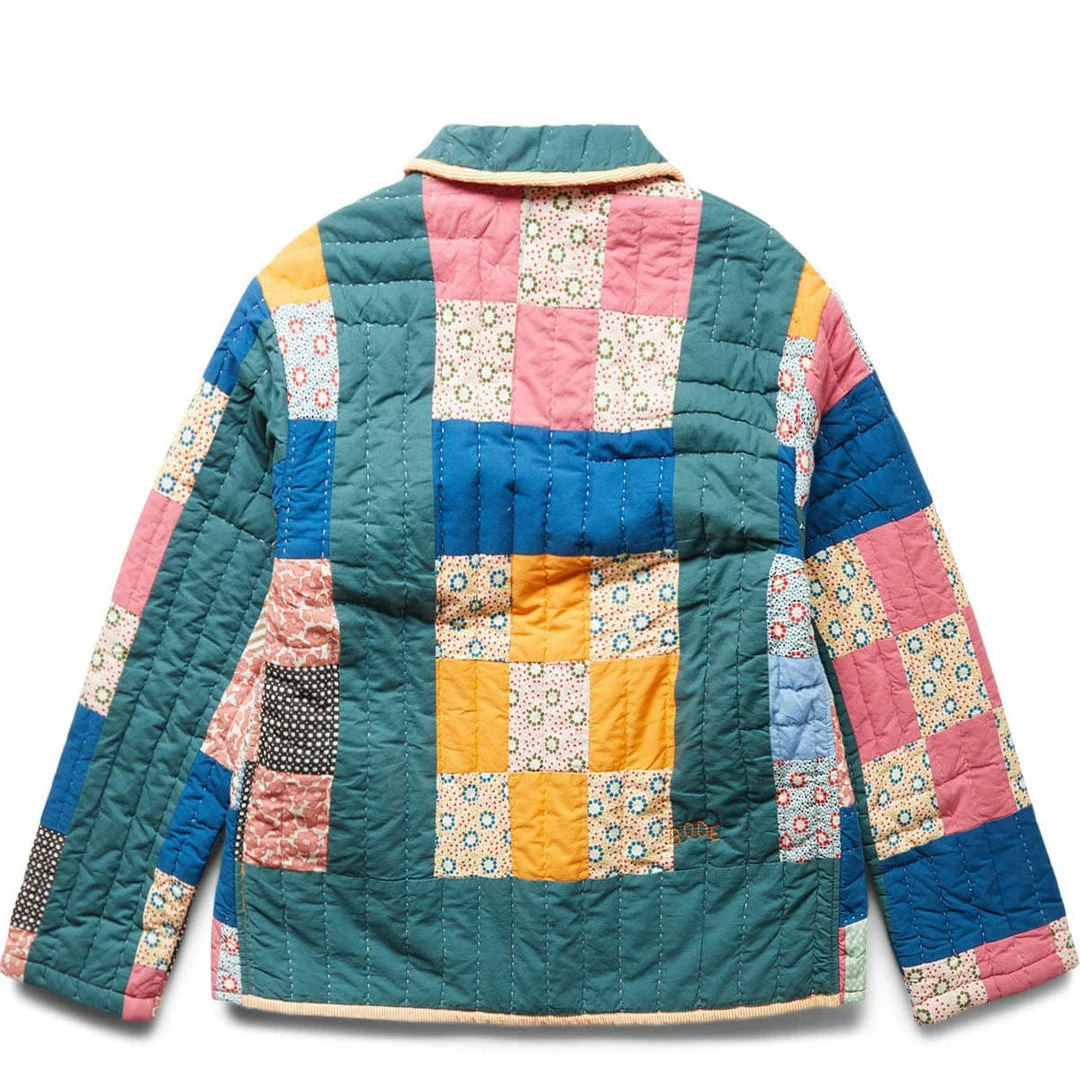 THIS JACKET IS INSPIRED BY A NINE-PATCH QUILT, CIRCA 1910S-1940S. THIS HISTORICAL REPRODUCTION FEATURES FLOWER-PRINTED FABRICS IN A CLASSIC WORKWEAR JACKET SILHOUETTE.