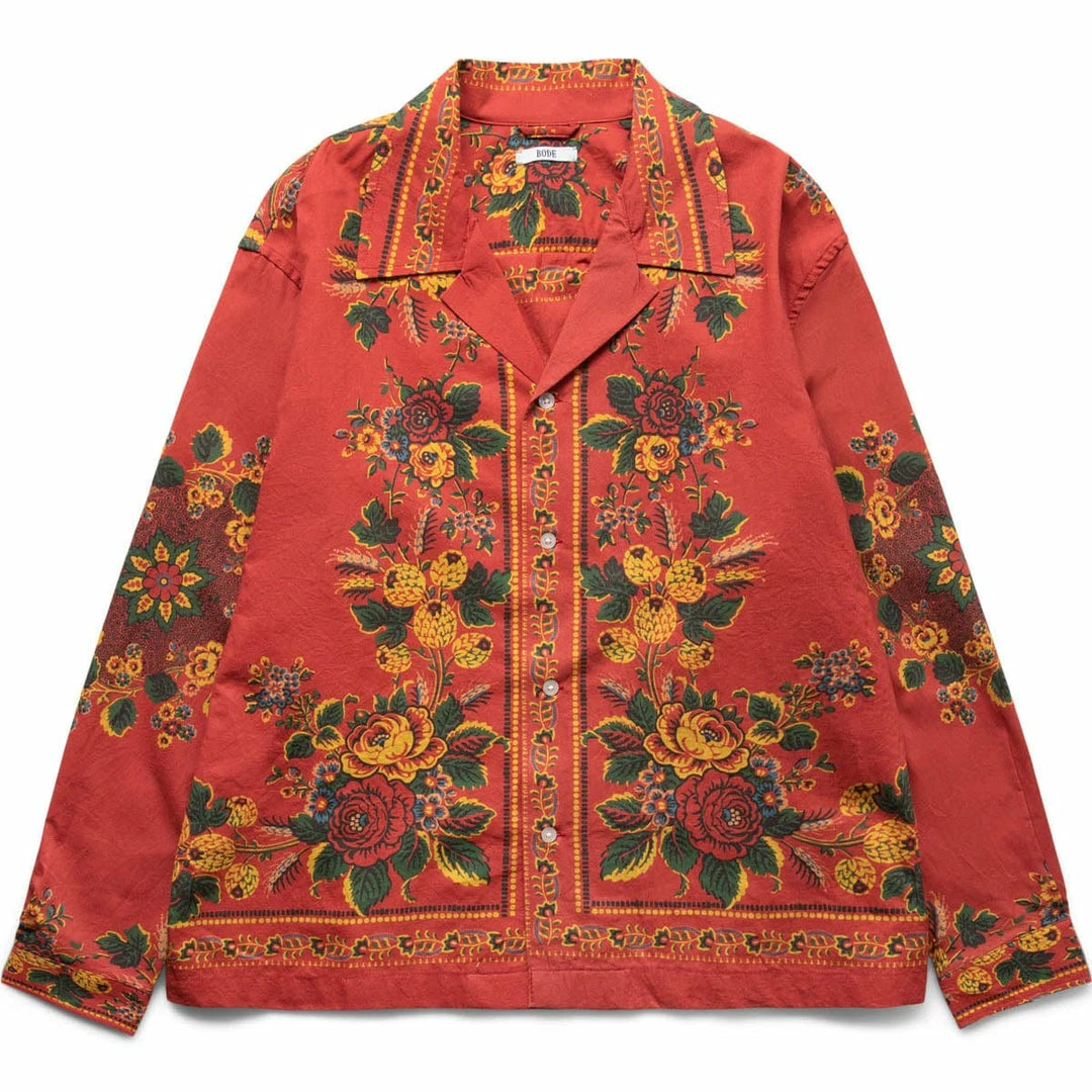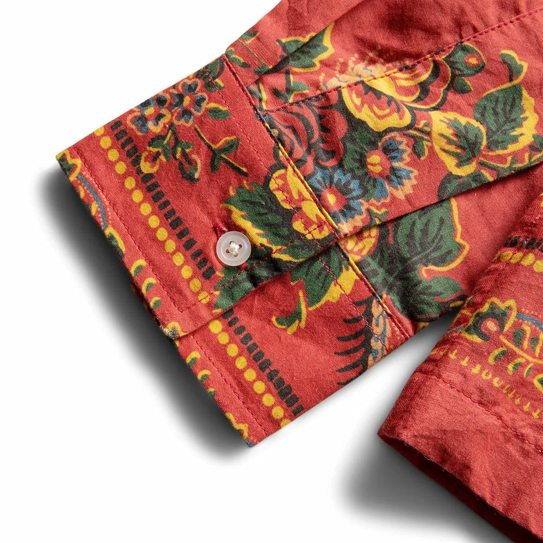 This long sleeve shirt is inspired by a late 19th-century bandana. The shirt features a faithful reproduction of the original intricate bandana motif, enlarged for scale.