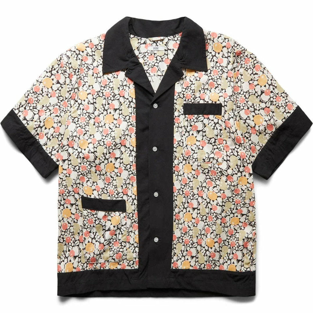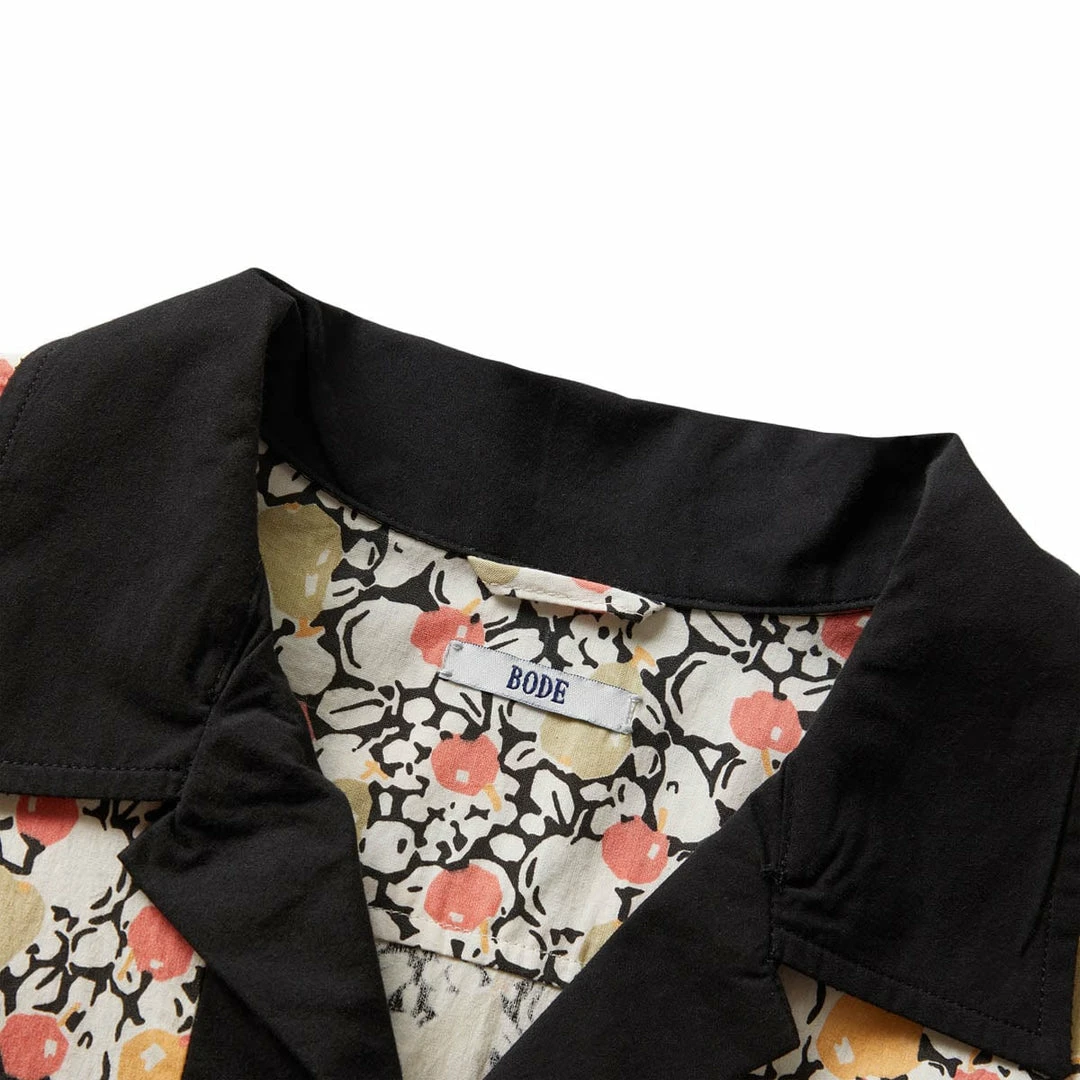 The BODE Pomme Fruit S/S Shirt is inspired by a 1920s dresser scarf. The printed cotton is a faithful reproduction of the motif found on the original dresser scarf featuring pears and cherries.