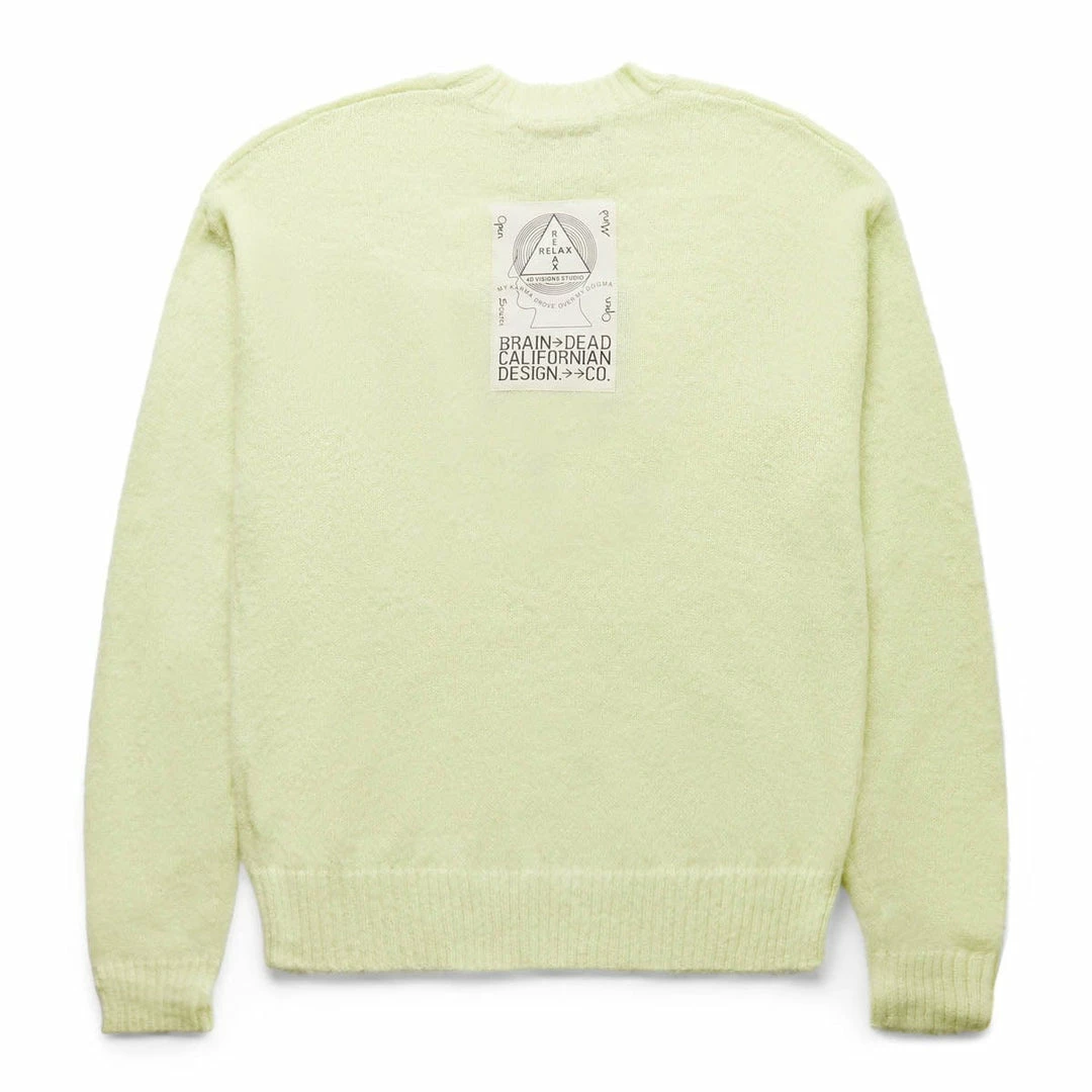 Brain Dead presents aΒ long sleeve superfuzz sweater with high pile logohead and back printed patch.Β
