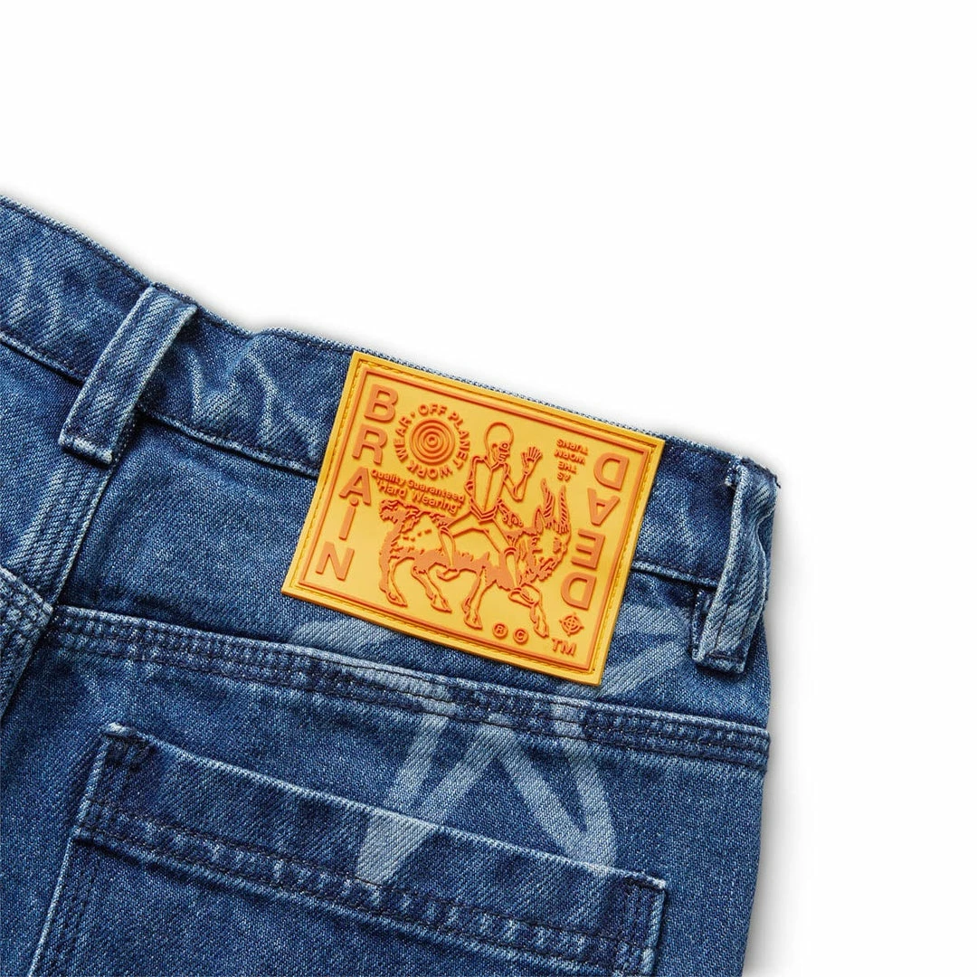 As a creative collective, Brain Dead is not based on one single person, nor one single idea. With its disruptive, graphic-led approach, the brand takes its cues from post punk, underground comics, skateboarding, and the spirit of subculture as a whole. With such an open design path, the brand is able to churn out innovative pieces, time and time again. Brain Dead presents vintage wash denim double knee pant with carpenter pockets and bleached star detailing for women.