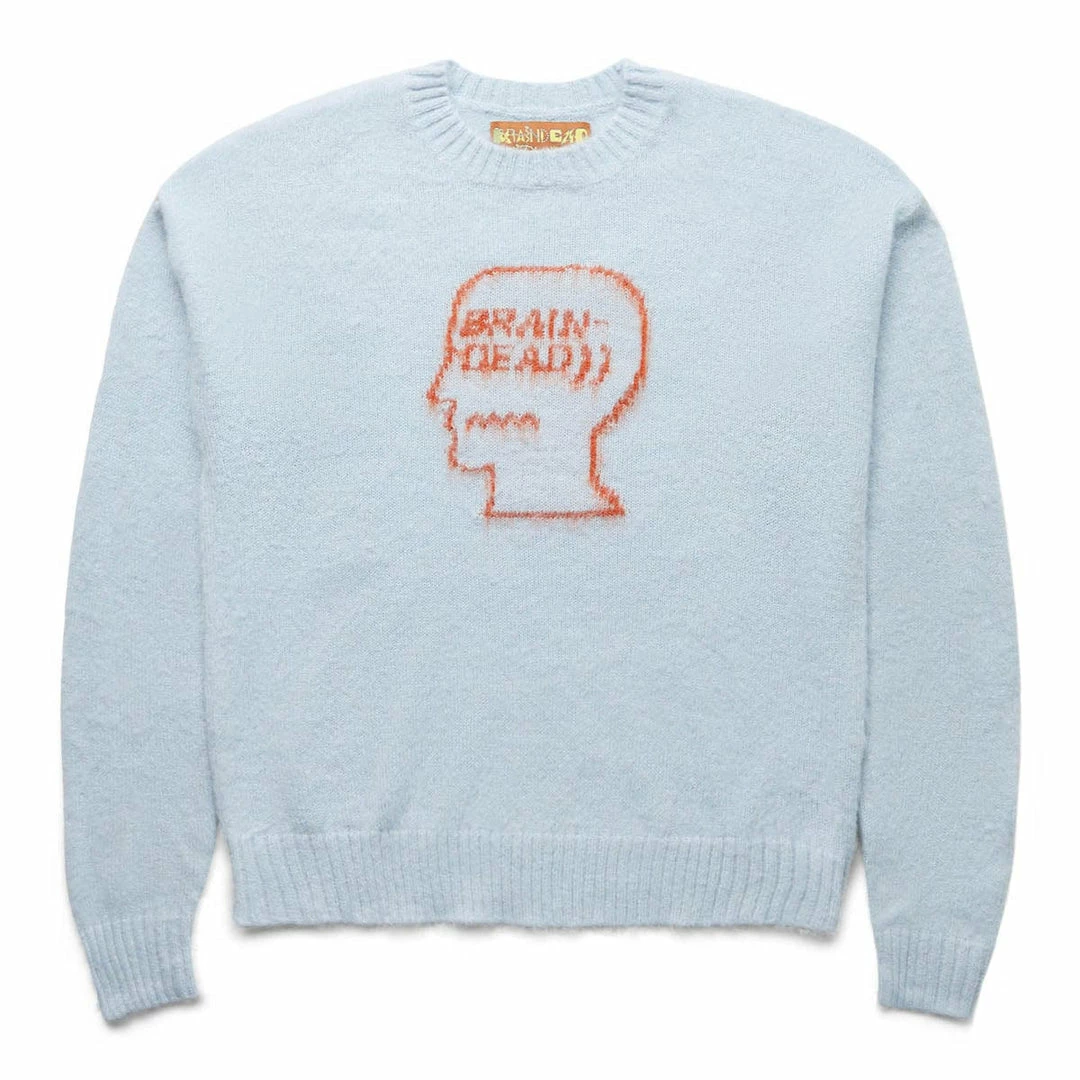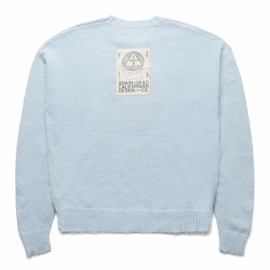 As a creative collective, Brain Dead is not based on one single person, nor one single idea. With its disruptive, graphic-led approach, the brand takes its cues from post punk, underground comics, skateboarding, and the spirit of subculture as a whole. With such an open design path, the brand is able to churn out innovative pieces, time and time again. Brain Dead presents the long sleeve superfuzz sweater with high pile logohead and back printed patch.