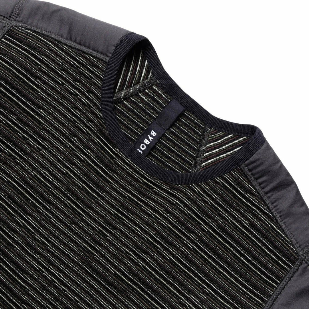 BYBORRE textile engineering and design intelligence on full display, the Weightmap Sweater is a functional patchwork that utilizes the inherent qualities of different weights and types of knits and targets them specifically to where they make most sense on the body. The Edition9™ iteration of this sweater is predominantly done in the new OTM™ knit and features woven reinforcement panels at the shoulders and elbows.