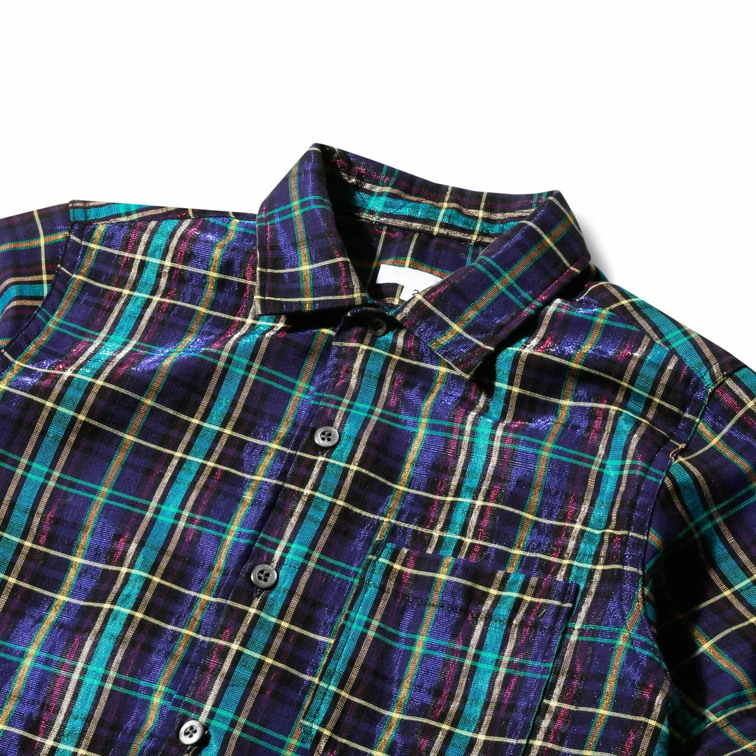 A classic plaid pattern, rendered in glittery metallic shades puts a summer, leisure staple into an entirely new context. It’s like stopping at a roadside diner that has “the world’s best waffles,” and getting them in molecular gastronomy form.Β