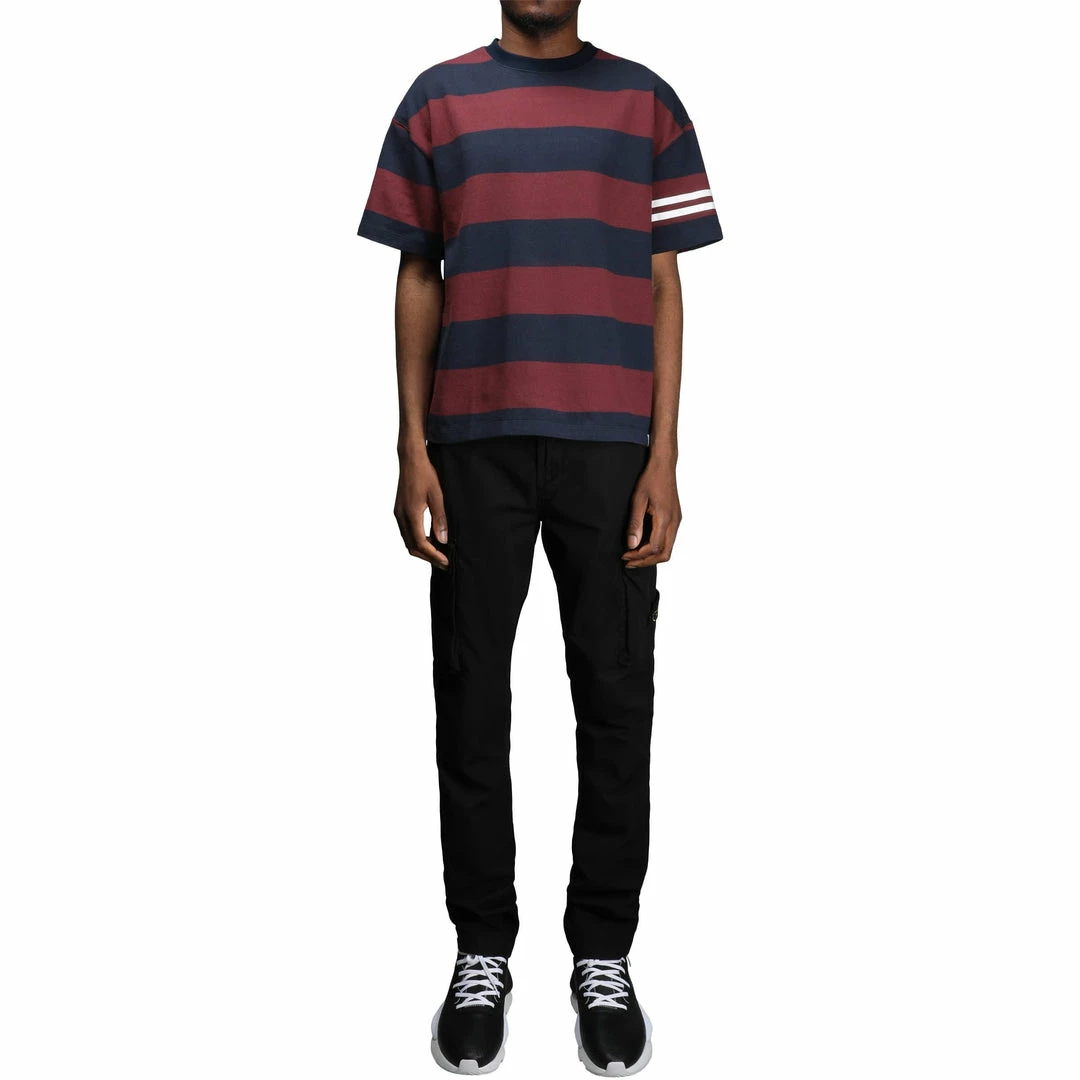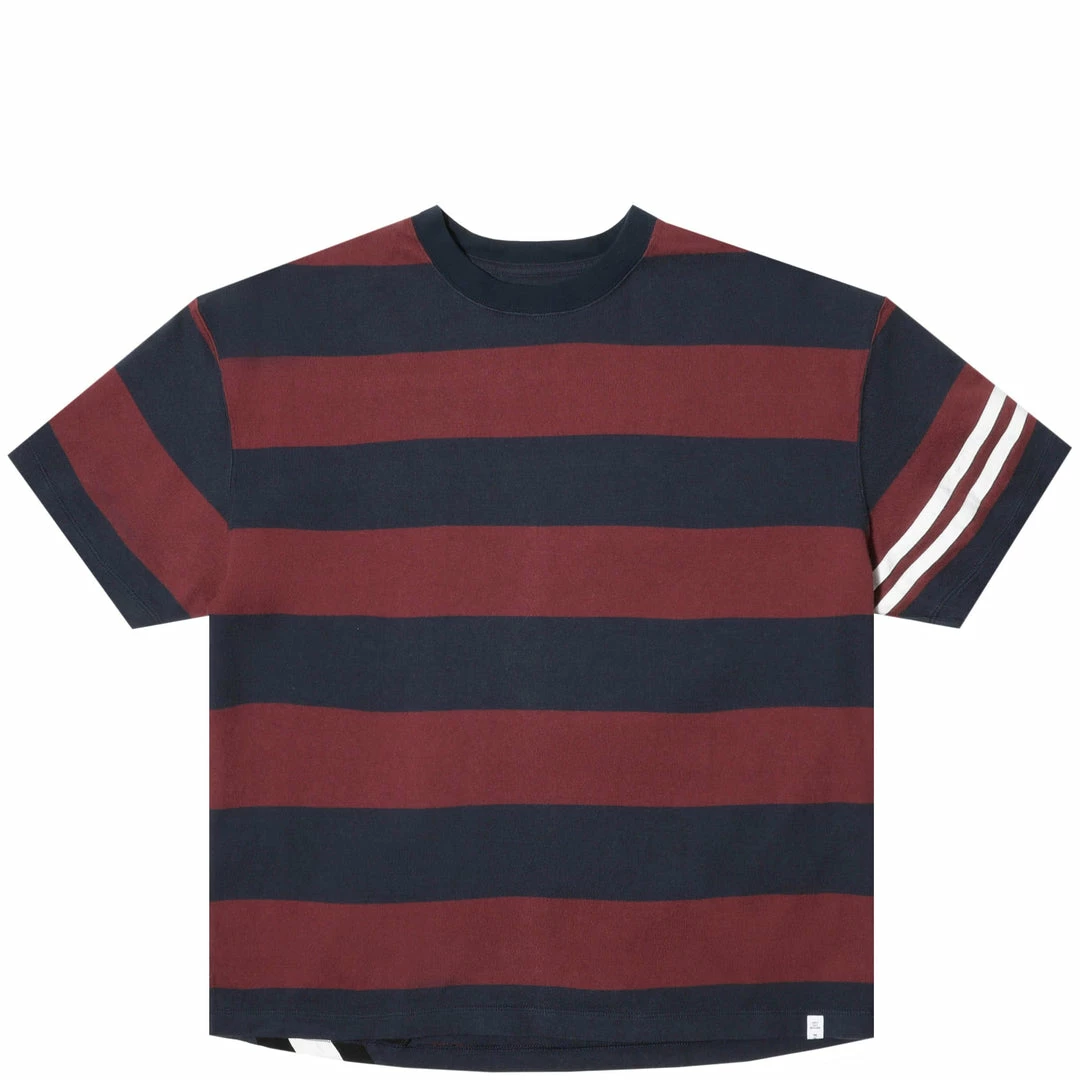 Facetasm’s Spring/Summer 2019 collection plays havoc with one of the foundation stones of modern, Japanese style, the Americana influenced ‘ivy’ look. The familiar, collegiate trappings of rugby shirts and bomber jackets are pulled out of proportion, and in some cases, deconstructed and reconstructed with disparate elements, becoming maximalist statement pieces. The same treatment is dished out to other Americana favorites, like the denim jacket and flight jacket.ย
