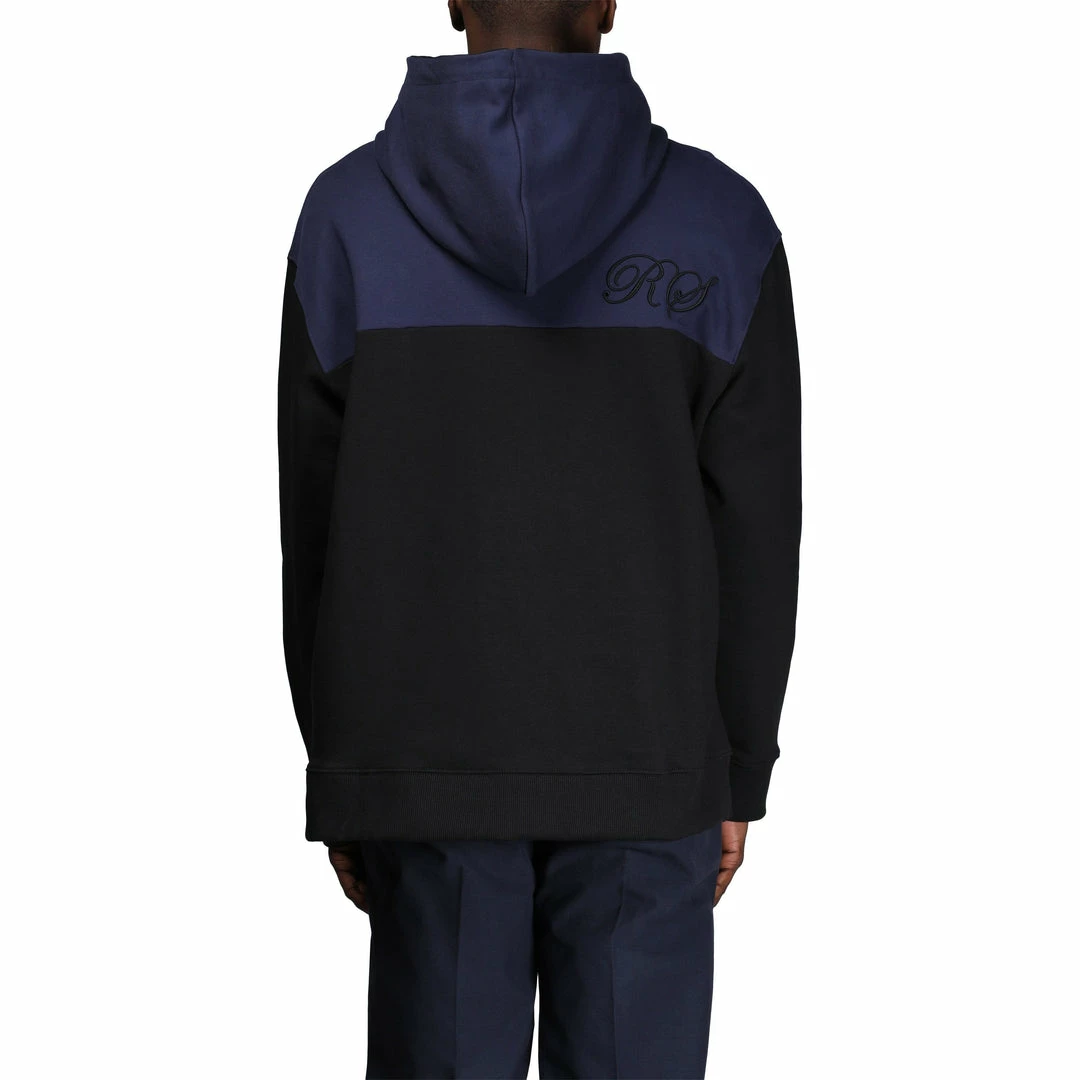 A cotton sweatshirt inΒ Raf Simons’Β signature oversized fit. Designed with tonal panelling and the collectionβs initial embroidery on both sides. Finished with a branded rubber badge at the hem.