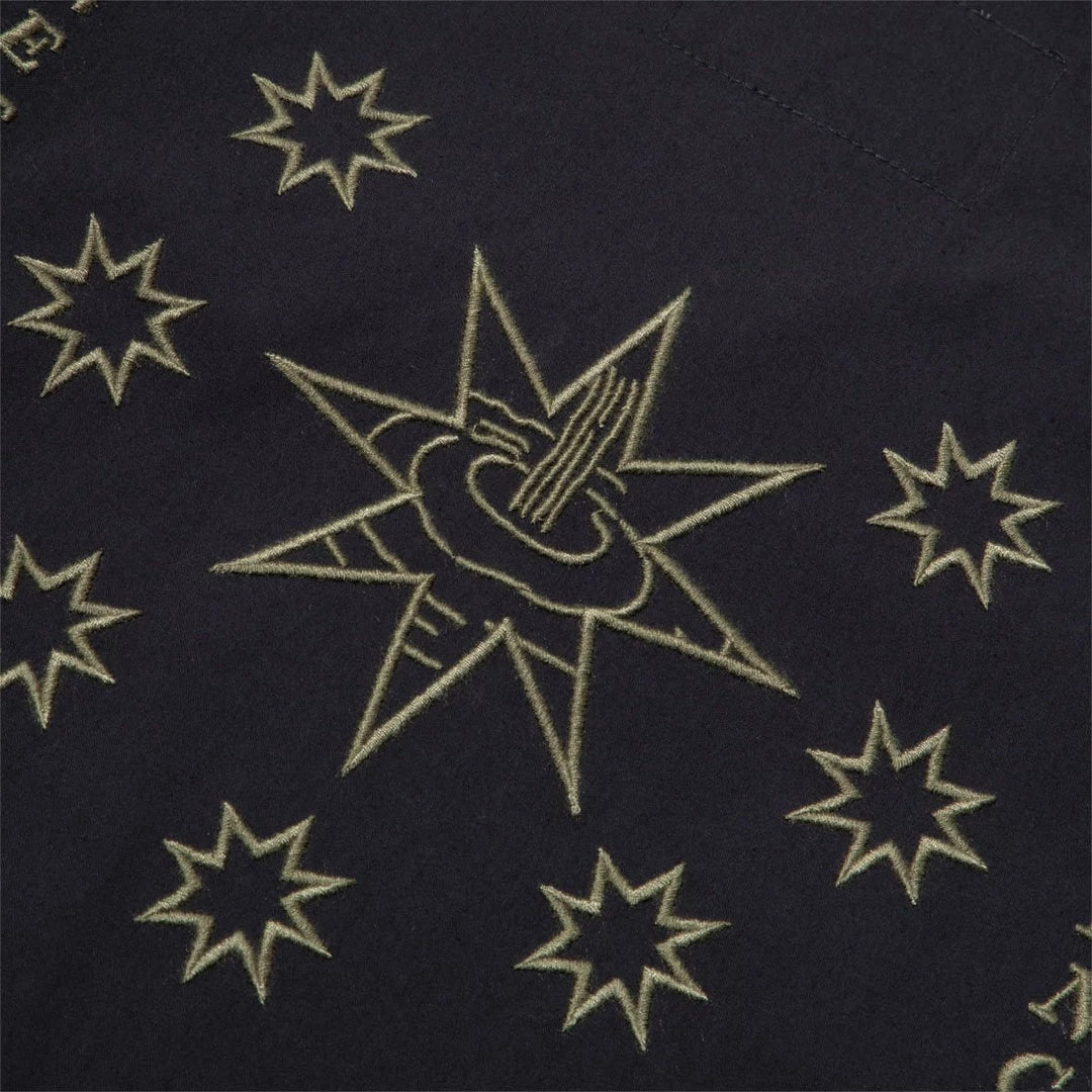 The Cordura Lazy Shirt is a wardrobe staple as a mid-layer zip up shirt, that is constructed from a high-quality Japanese Cordura® Nylon-Cotton blend with water-resistant finish and an original design embroidered on the back using vintage machines. This boxy piece features a chest pocket and a large side pocket which wraps to the back, with a classic vintage talon zip front fastening at the center front.