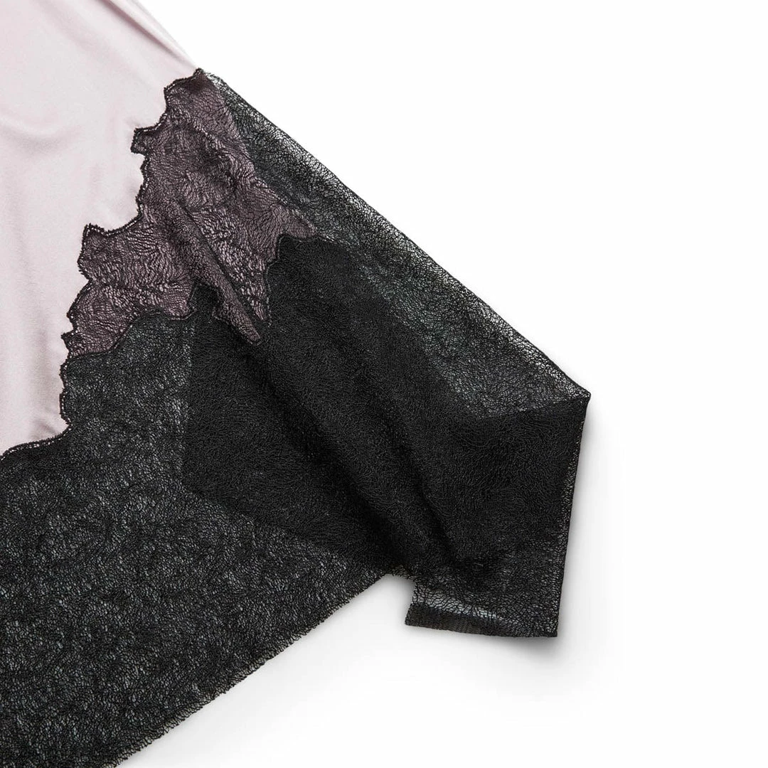 - Composition: 93% silk, 7% elastane. Trim: 100% polyester.