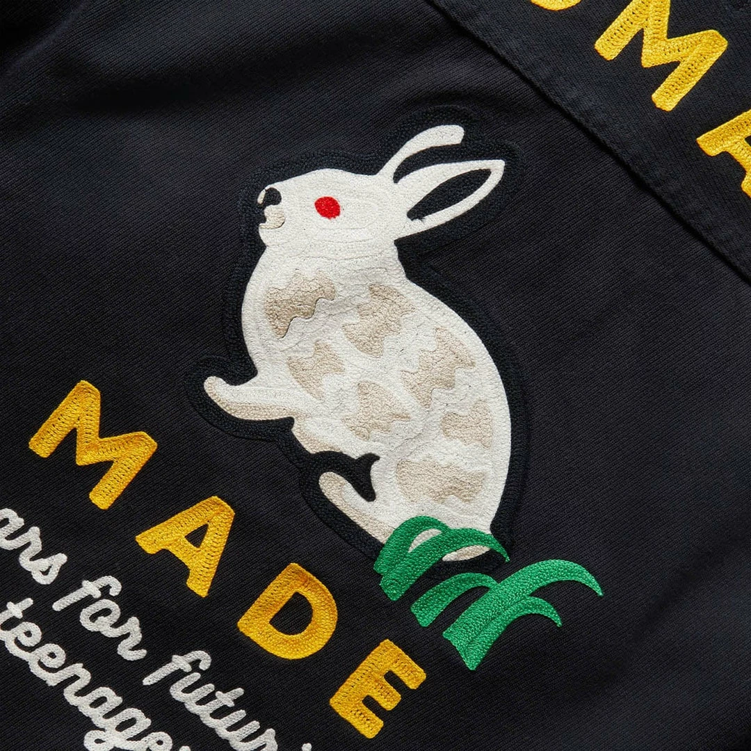 Human Made is a joint venture between Nigo and enigmatic graphic artist Sk8thing and combines exacting construction standards and impeccable historical accuracy, courtesy of vintage reproduction experts Warehouse, and lighthearted graphic contributions from Sk8thing himself. This unique balance between playful motifs and painstaking recreations gives Human Made and unmistakable aesthetic, one that can blend into any wardrobe.