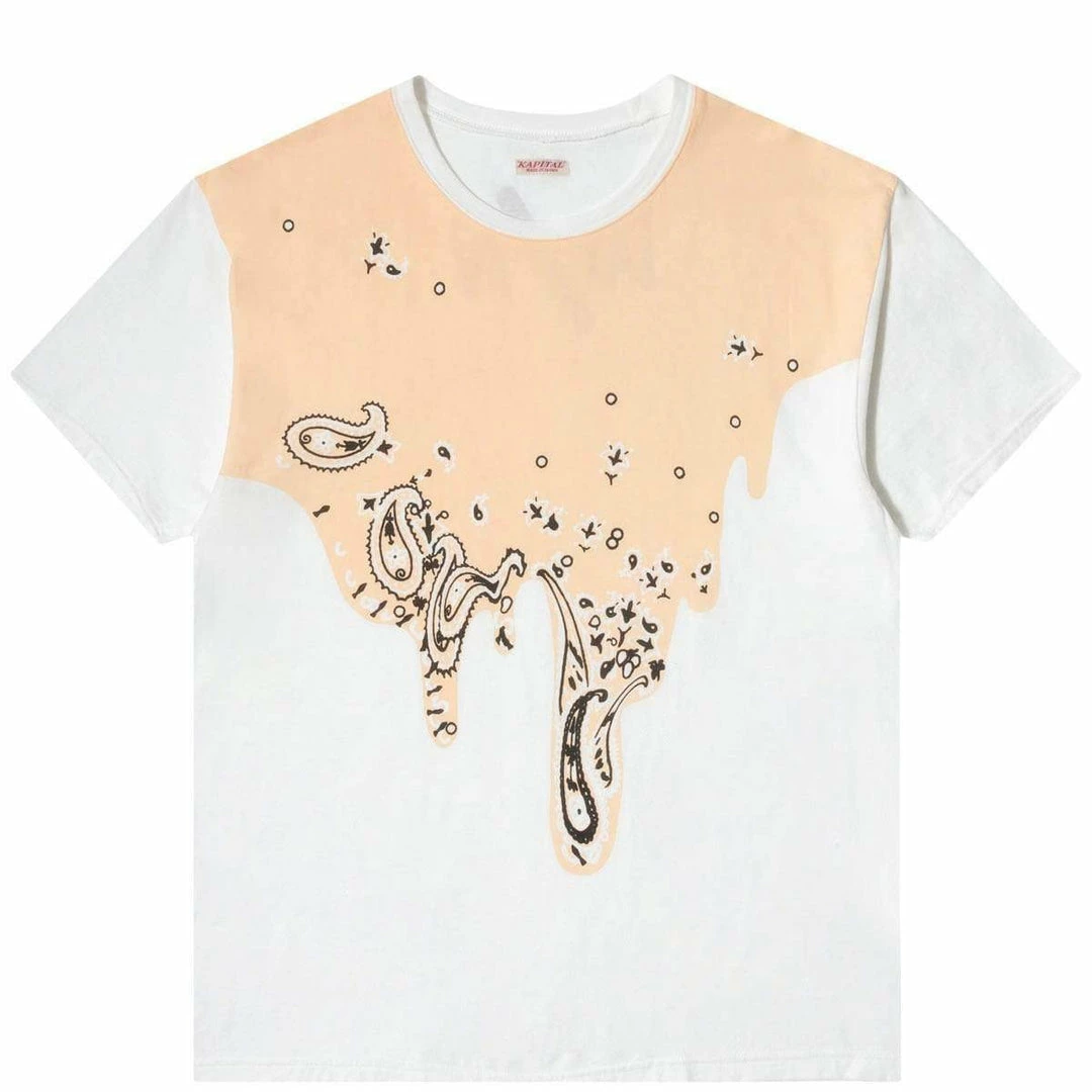 Crew T with a melted bandana printed on it. A pale pale tone with a refreshing, nostalgic atmosphere. Packed T-shirt specifications that are easy to take out when going out. Popsicles are printed on the package. An item that can be used both as a main item and as a destination.