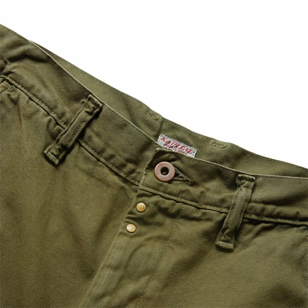 With the reputation as one of the most sought after names in the world of denim and alternate reality Americana , Kapital launched in 1996 and marries impeccable craftsmanship and innovative textile techniques with an intricately detailed, elegantly offbeat signature look, creating some of the most unique, authentic examples of ‘future vintage’ – garments and accessories coveted now that will only become more desirable as time goes on. A unisex, high-waisted pant based on vintage American work style trousers. The pants have been given a contemporary fit and are crafted in a hardwearing soft washed canvas.