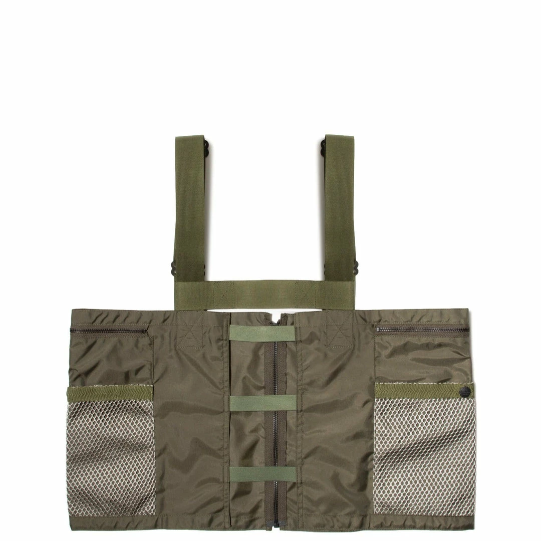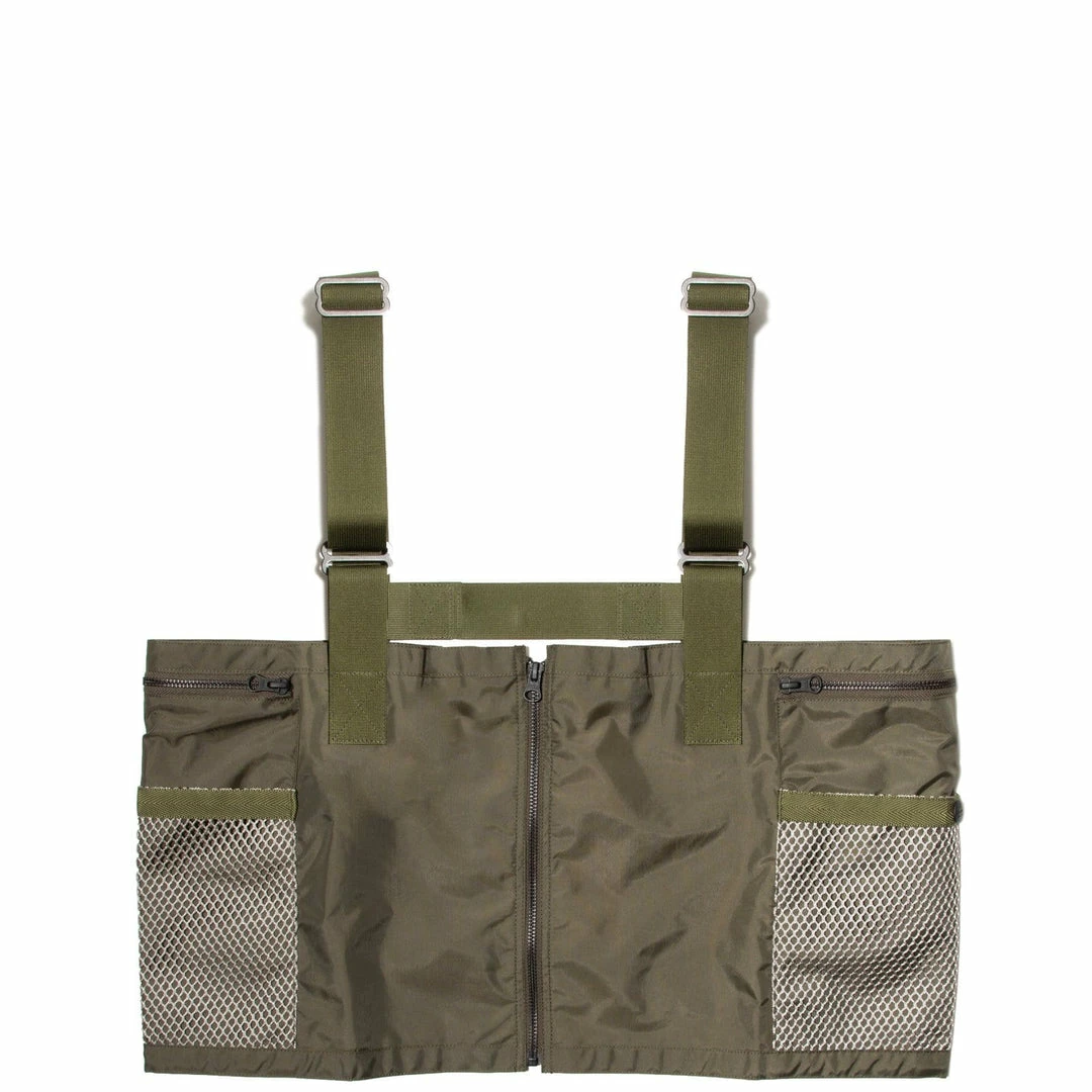 The body-wrapped nylon ox suspenders vest, which is a development of last year’s survival vest, features mesh over pockets.Β The specification that the back is opened by the triple elastic band is effective when carrying a backpack.Β The new color way by developing three colors adds pop to items with a strong tactical feeling.