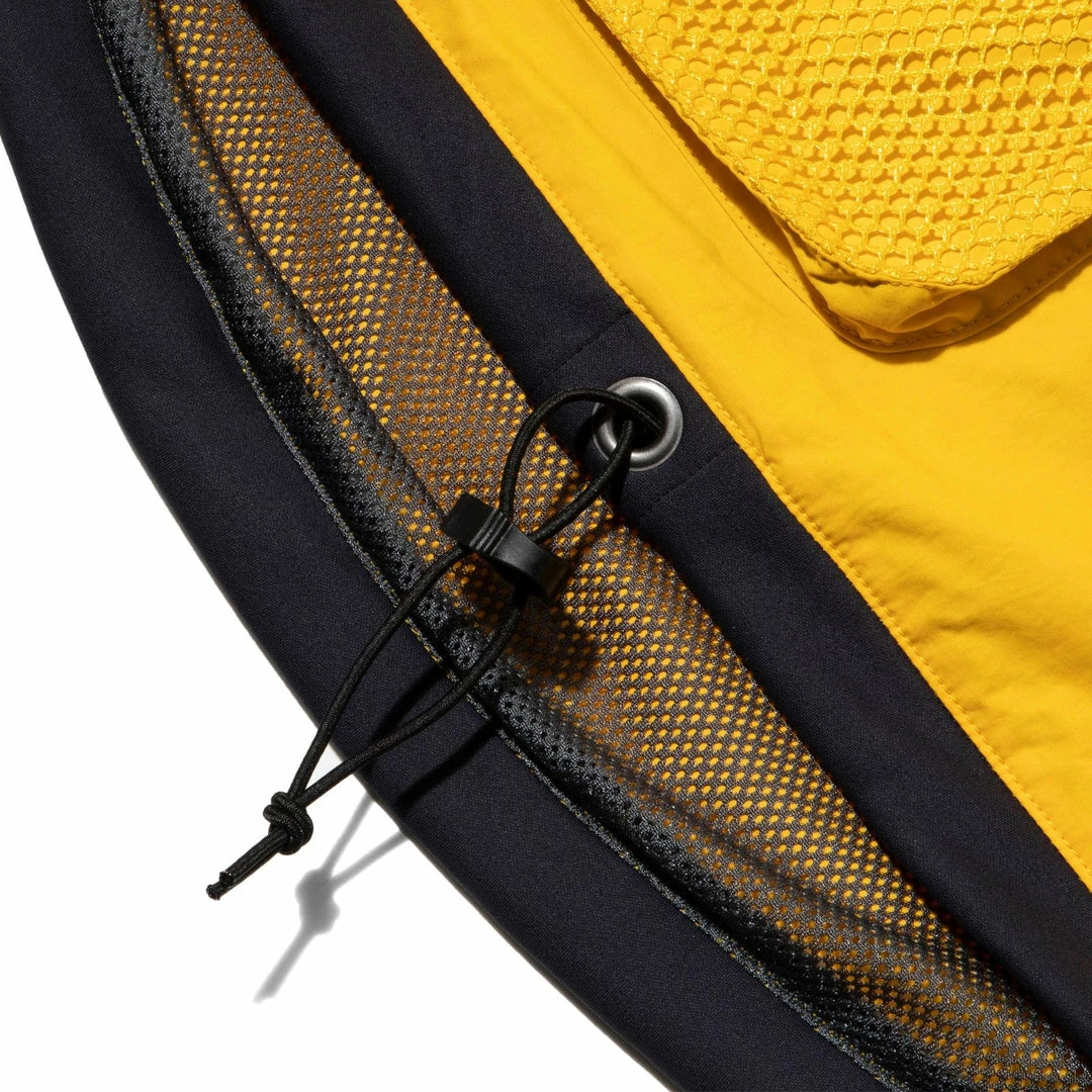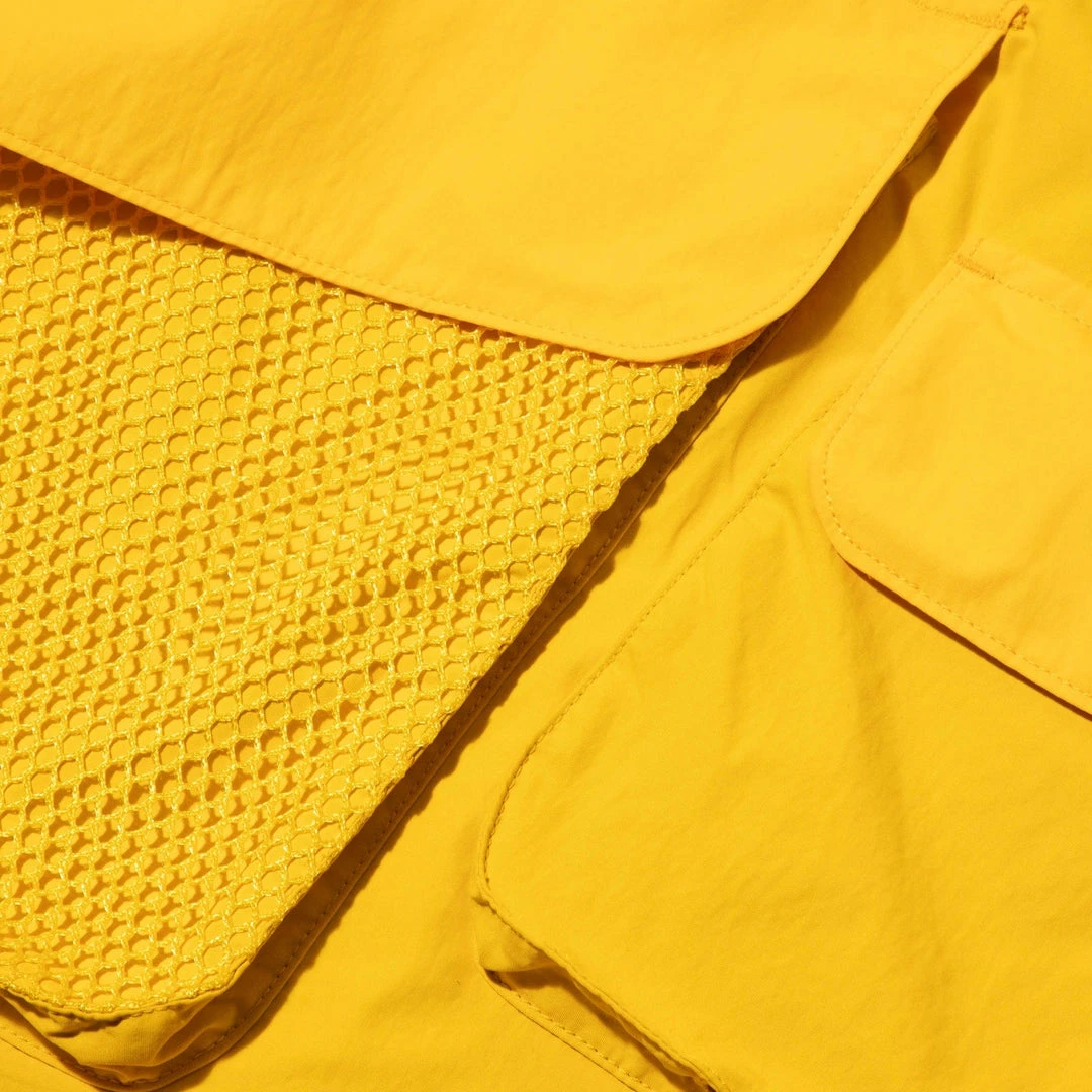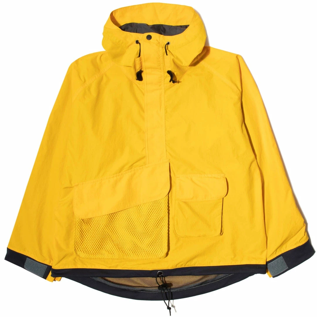 The round-tailed short anorak features a front big pocket with mesh over pockets. The lining is ALL mesh for the water repellent nylon shell. The Velcro closure cuffs and the hem of the spindle adjust are made of a stretch material that is soft to the touch, making it comfortable to wear.