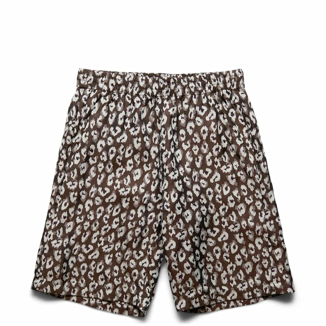 - Elasticated drawstring waistband, front and back zipped welt pockets