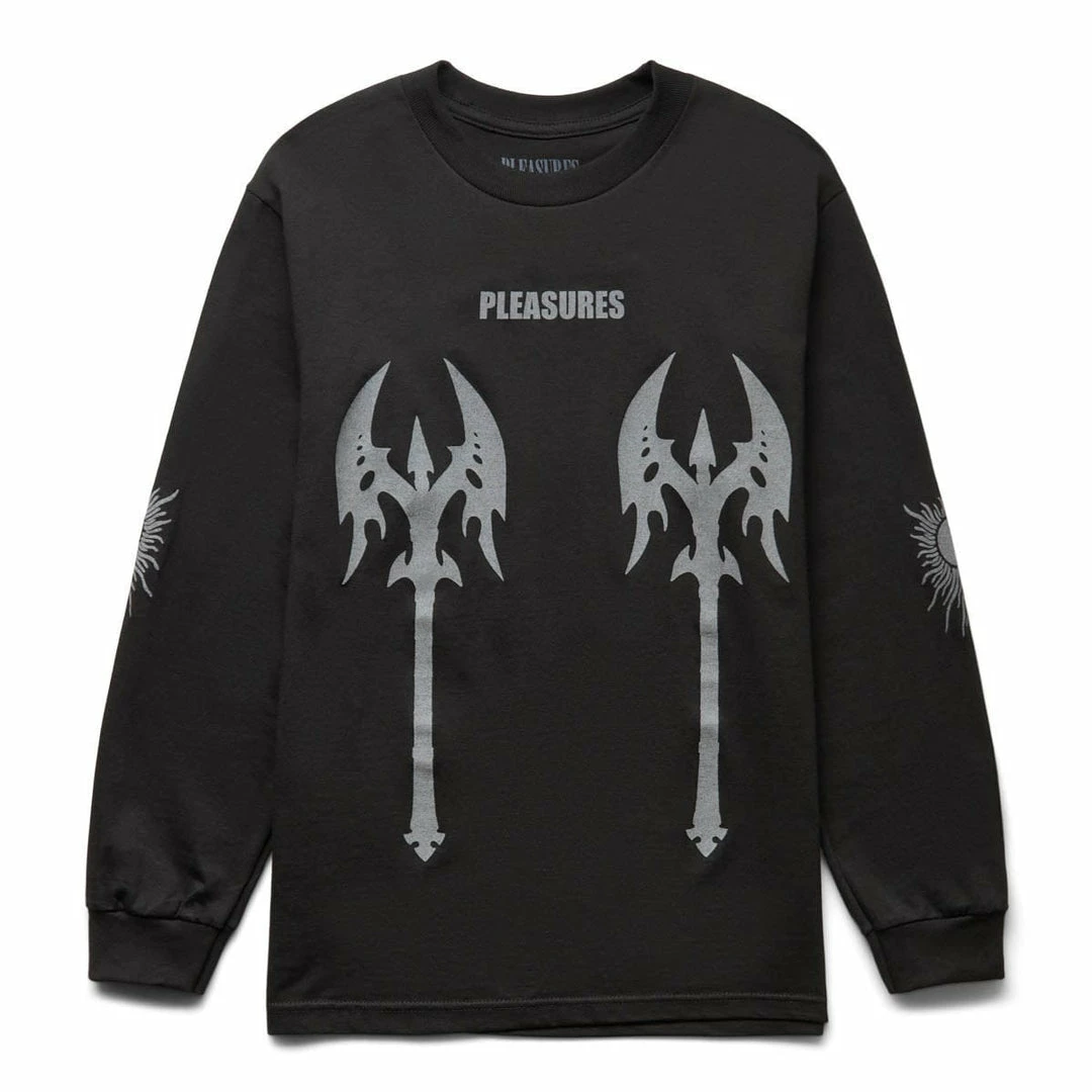 From the mind of designer Alex James, Pleasures is a contemporary expression of the eternally influential and relevant 80s and 90s subcultural aesthetics. James has lived and loved the sources of Pleasures’ inspirations, which sets it apart from the reference mining pack.