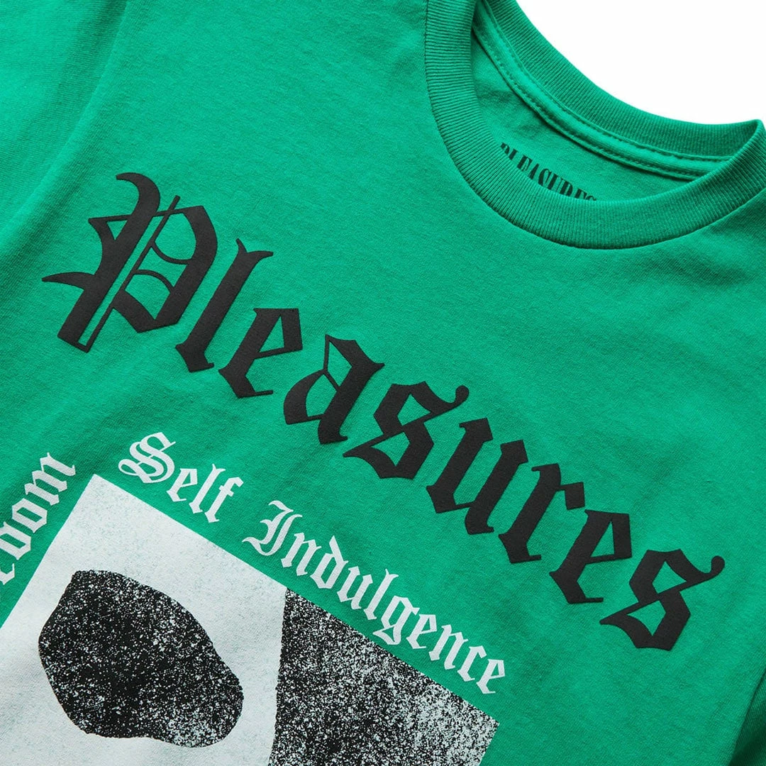 From the mind of designer Alex James, Pleasures is a contemporary expression of the eternally influential and relevant 80s and 90s subcultural aesthetics. James has lived and loved the sources of Pleasures’ inspirations, which sets it apart from the reference mining pack.