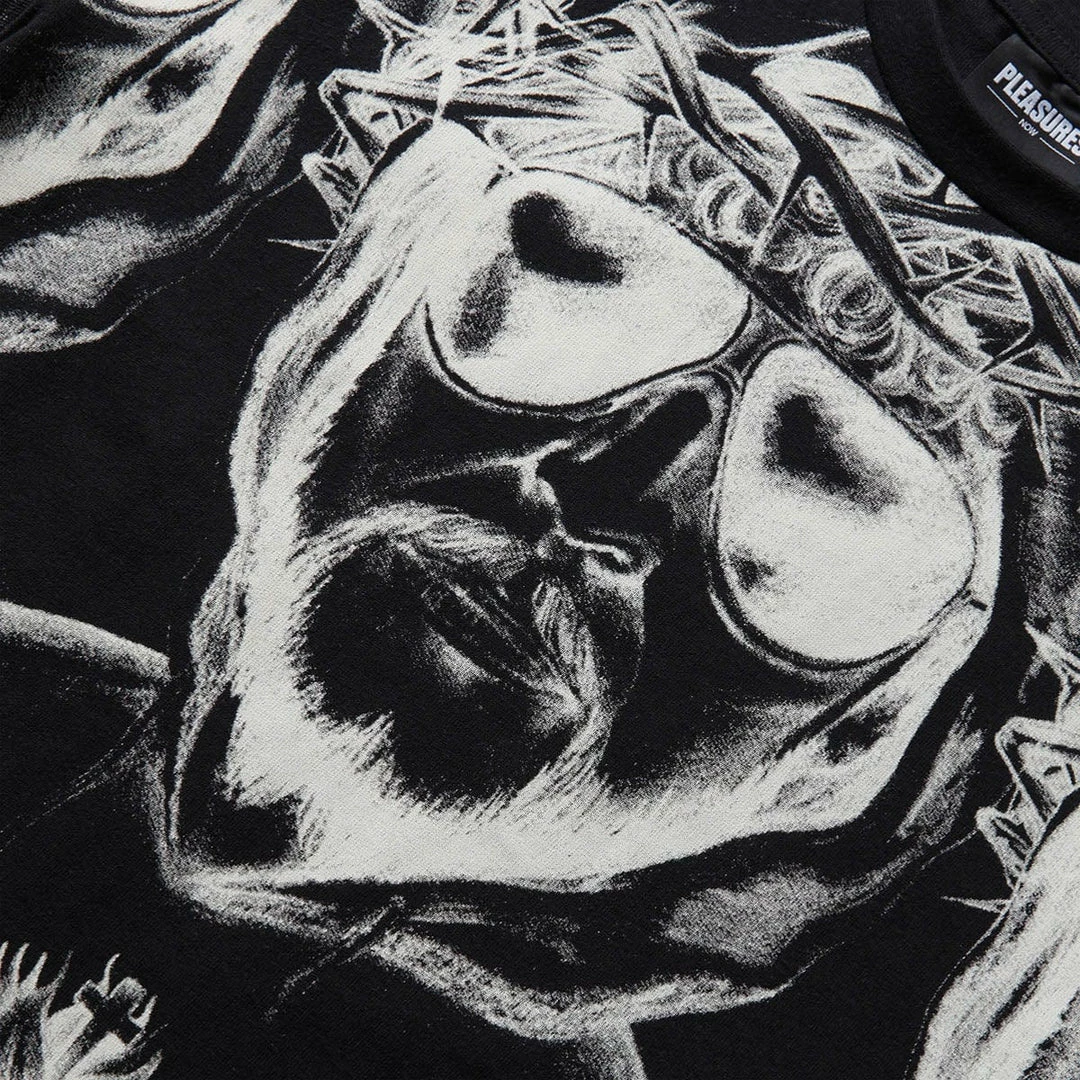 From the mind of designer Alex James, Pleasures is a contemporary expression of the eternally influential and relevant 80s and 90s subcultural aesthetics. James has lived and loved the sources of Pleasures’ inspirations, which sets it apart from the reference mining pack.