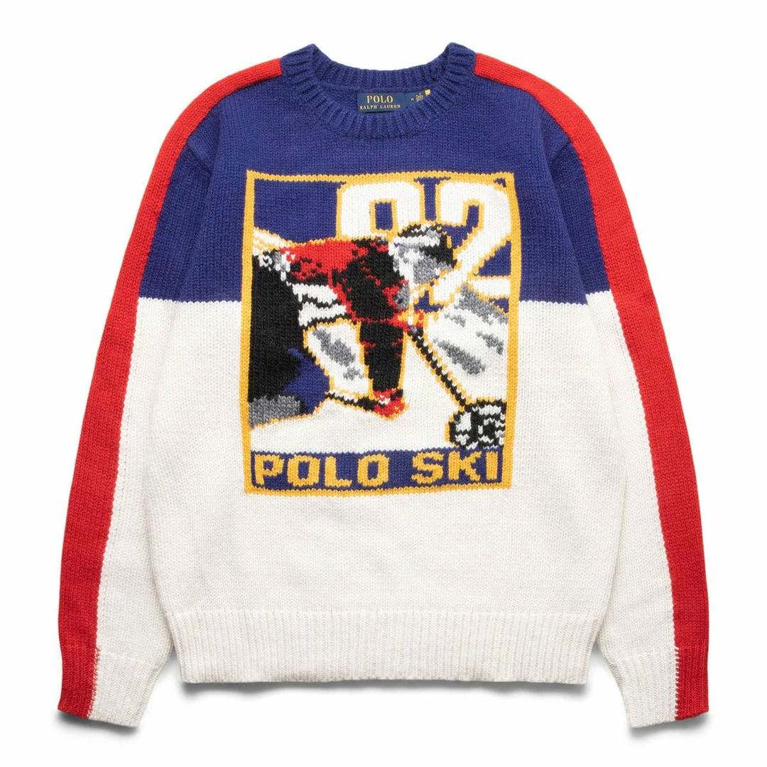 This Polo SKi Crewneck Sweater is made from an soft, heavyweight wool blend thatβs been intarsia-knit with a colorful Polo Ski β92 design from the Ralph Lauren archives.