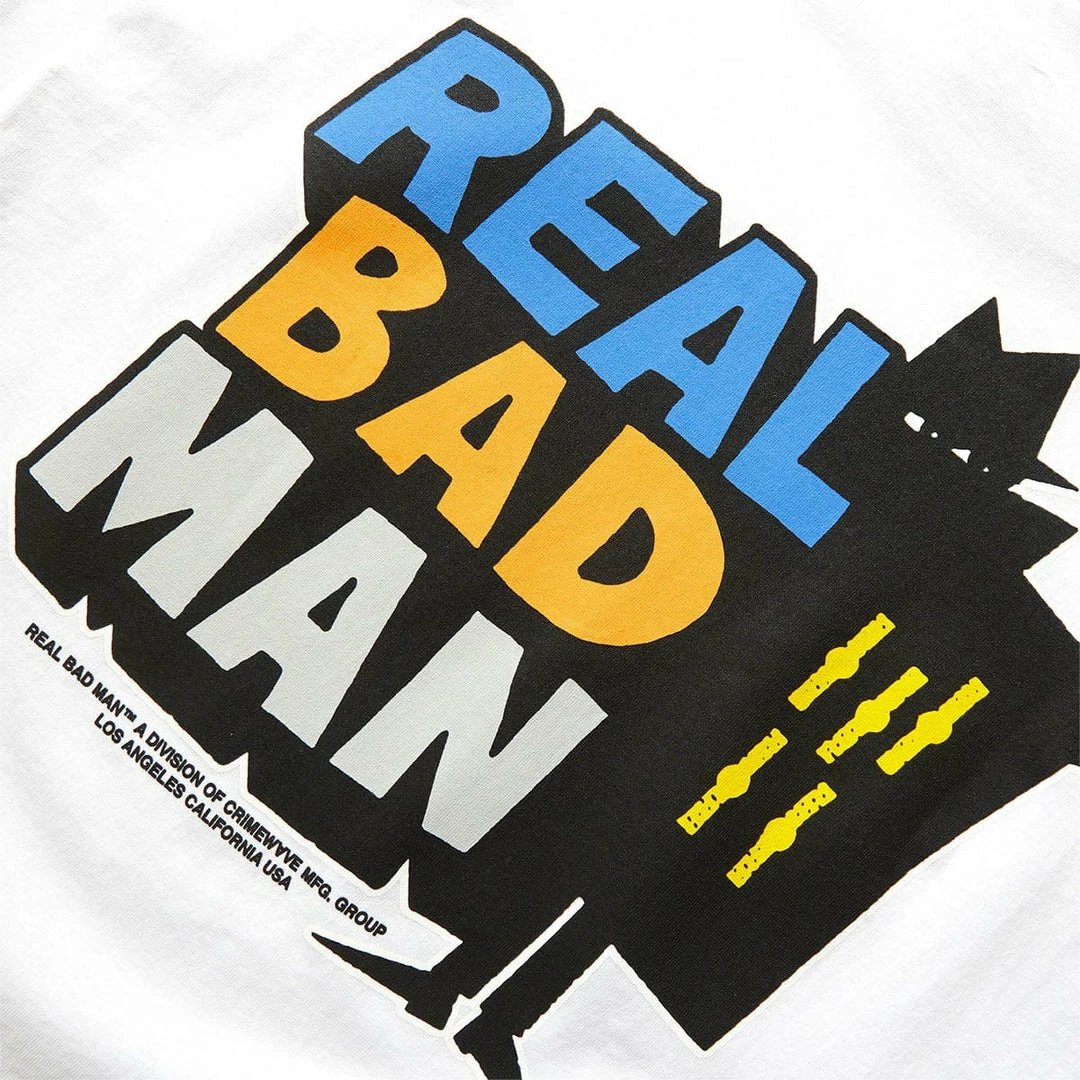 What began as a two-man design operation to create bootleg t-shirts for bands that lacked merch has, in time, grown into an LA creative collective, occasional small-run record label and graphic heavy streetwear brand. Born from the minds and talents of ex-Stussy Art Director, Adam Weissman and artist Noah Butkis, Real Bad Man maintains a focus on music, but have gone onΒ to employ retro graphics, aged pop culture references and shady cartoonish characters for their own humorous and subversive brand of apocalyptic counter culture.