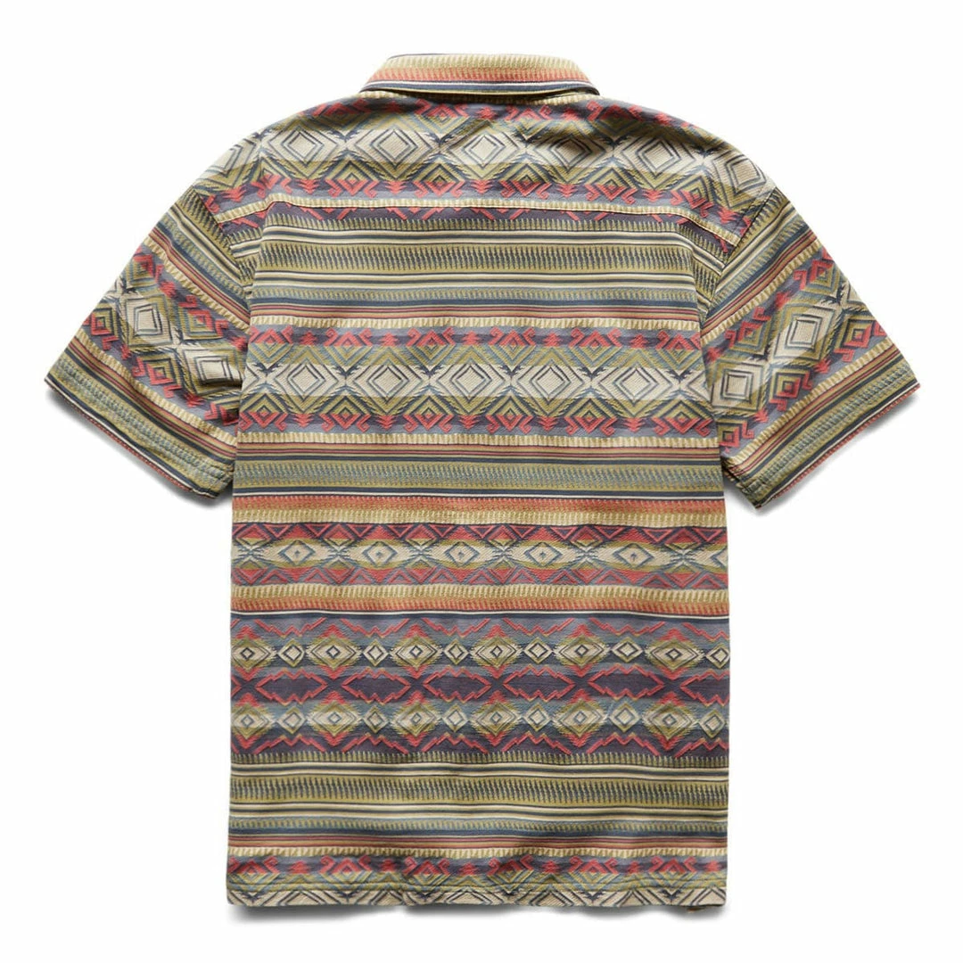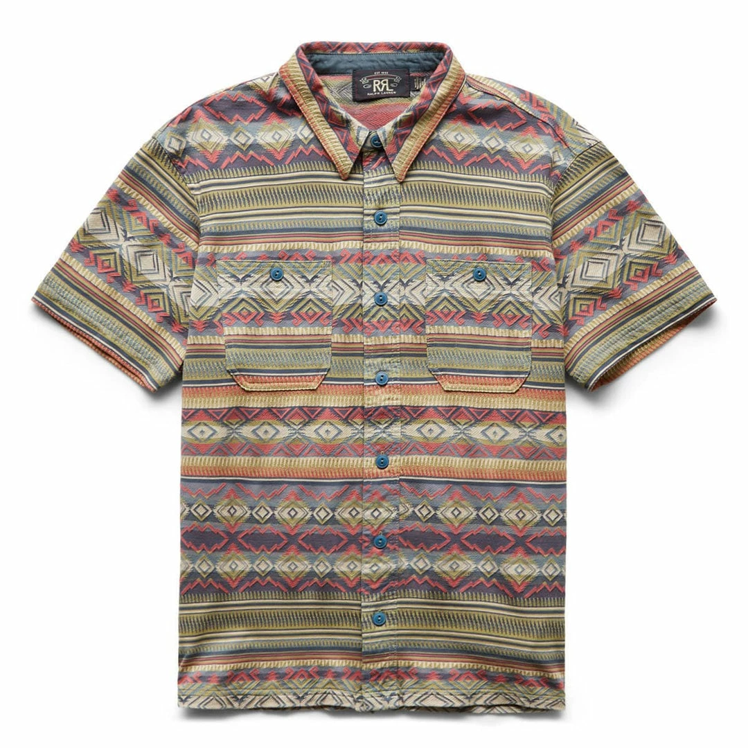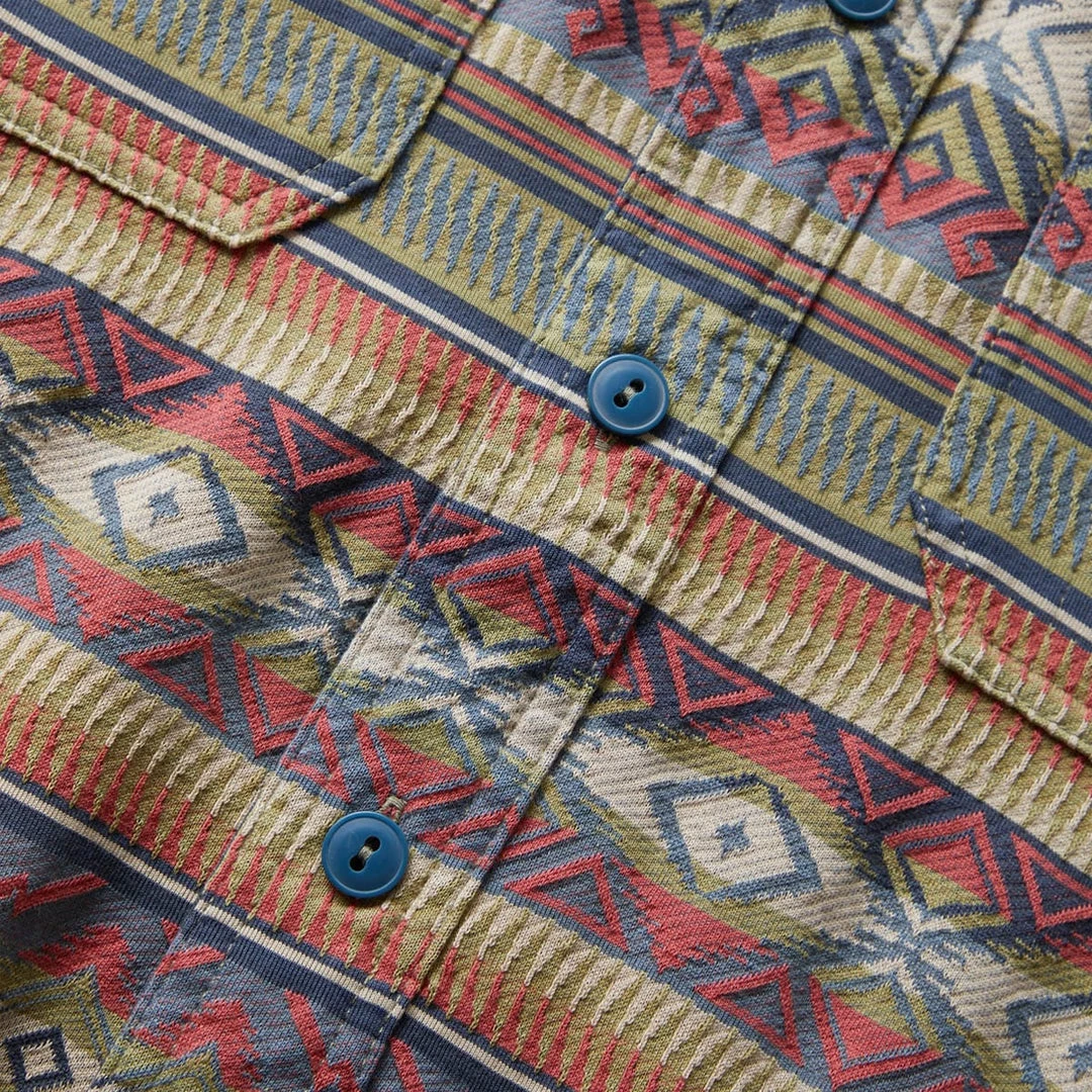 The S/S Knit Workshirt balances a workwear design with its plastic buttons, collar, and straight fit but utilizes a colorful knit pattern ensure when it’s time to clock out you can be on instant vacation.