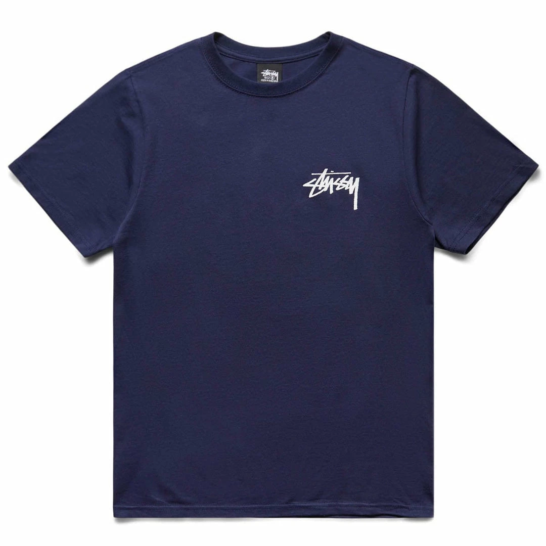 Black Stüssy tee shirt 100% cotton with an oversized cut. On the back of this t-shirt you will find a silk-screened design representing a galaxy inside an hourglass.
