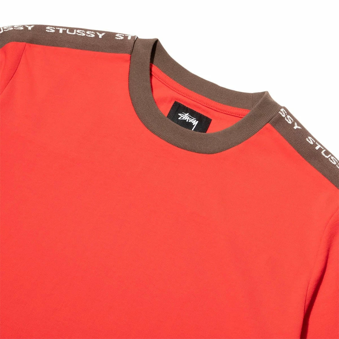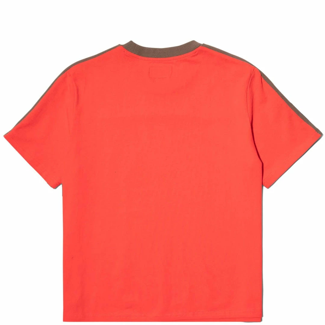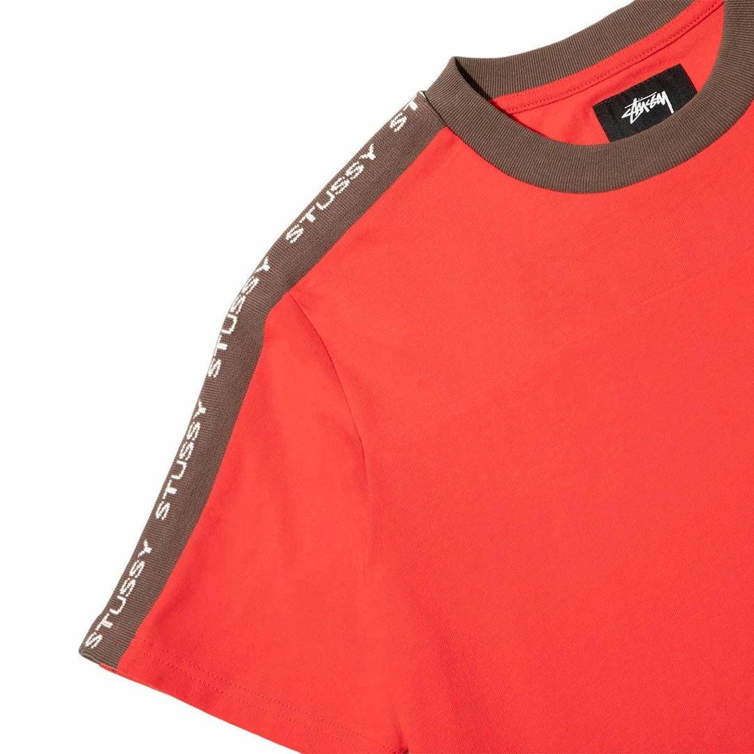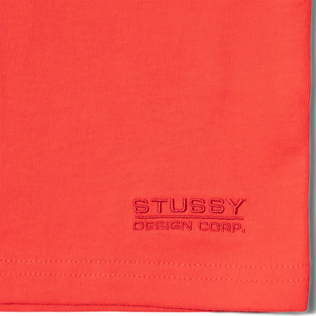 The bold red body draws special attention to the Stüssy logo which runs along the brown rib from shoulder to sleeve. It’s a red so bold, you may not even notice the red embroidered logo on the bottom left.