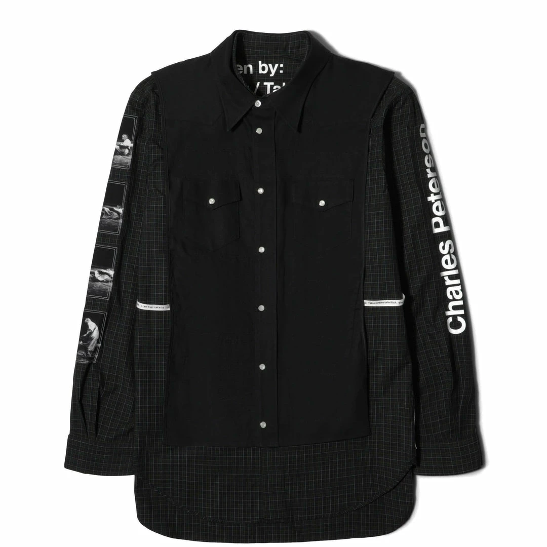 Petersonโs black and white photography didnโt just document the nascent musical movement that would eventually be labeled grunge; it mythologized it. Petersonโs sometimes blurred, sometimes light streaked, wide-angle action shots captured the total live experience, rather than lead singer glamor poses. This anti-rock star ideal is replicated throughout the Spring/Summer collection, as the photographs become an aspect of Miyashitaโs larger, intricately tailored, progressive aesthetic, rather than a singular focus.