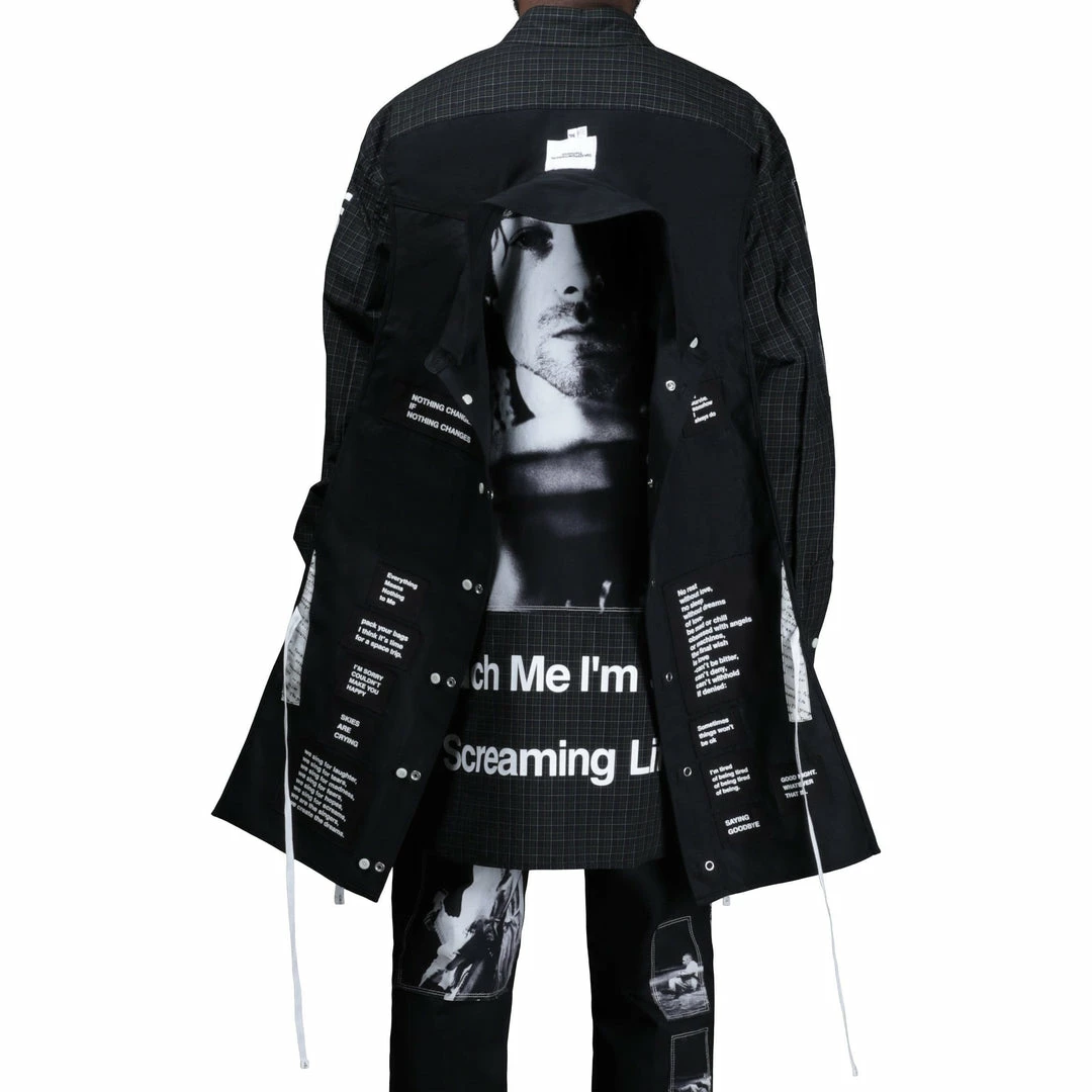 TAKAHIROMIYASHITA The Soloist also highlights other aspects of Americana into the grunge-centric collection. Bomber jacket silhouettes made from reclaimed vintage quilt patterns, an oversized, label branded, poncho/blanket hybrid, and the designerโs own, distinctive takes on staple pieces.